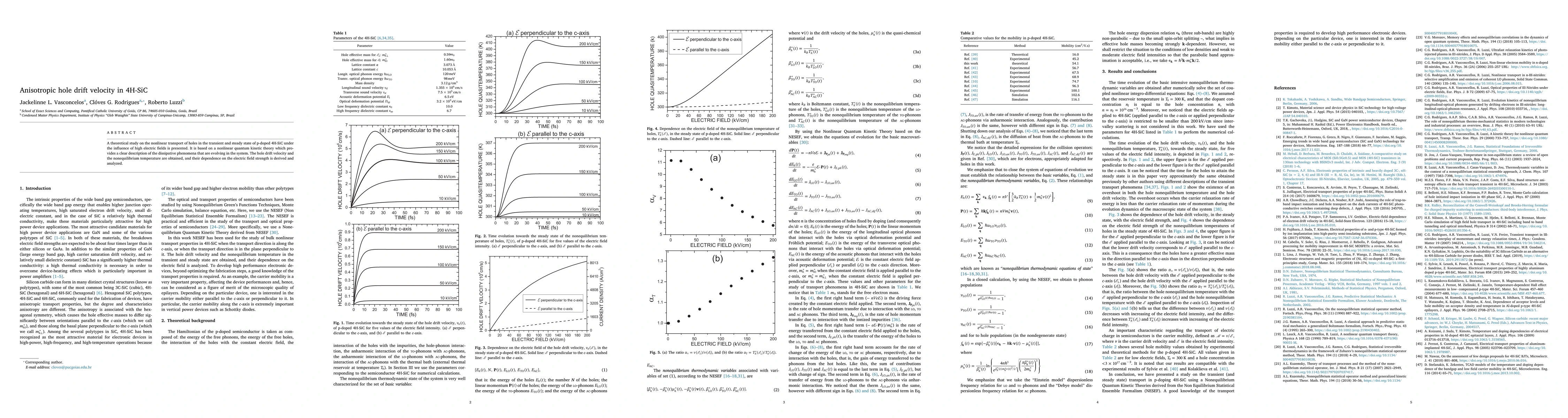 A theoretical study on the nonlinear transport of holes in the transient and steady state of p-doped 4H-SiC under the influence of high electric fields is presented. It is based on a nonlinear quantum kinetic theory which provides a clear description of the dissipative phenomena that are evolving in the system. The hole drift velocity and the nonequilibrium temperature are obtained, and their dependence on the electric field strength is derived and analyzed.