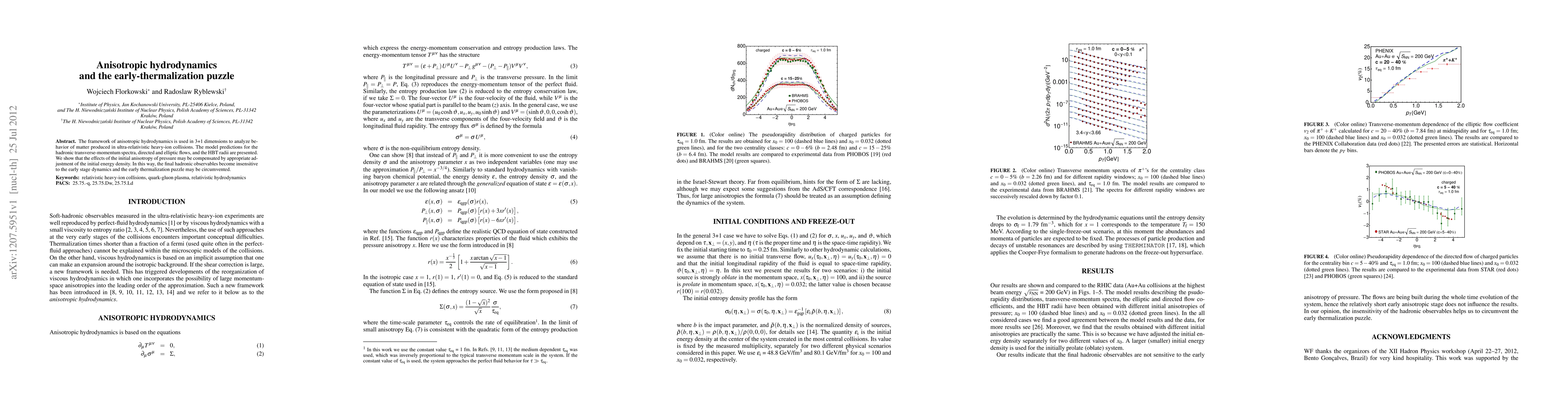 Anisotropic hydrodynamics addresses the behavior of matter in ultra-relativistic heavy-ion collisions, showing that initial pressure anisotropy can be compensated by adjusting initial energy density, thus resolving the early thermalization puzzle. This approach leads to final hadronic observables that are independent of early-stage dynamics.