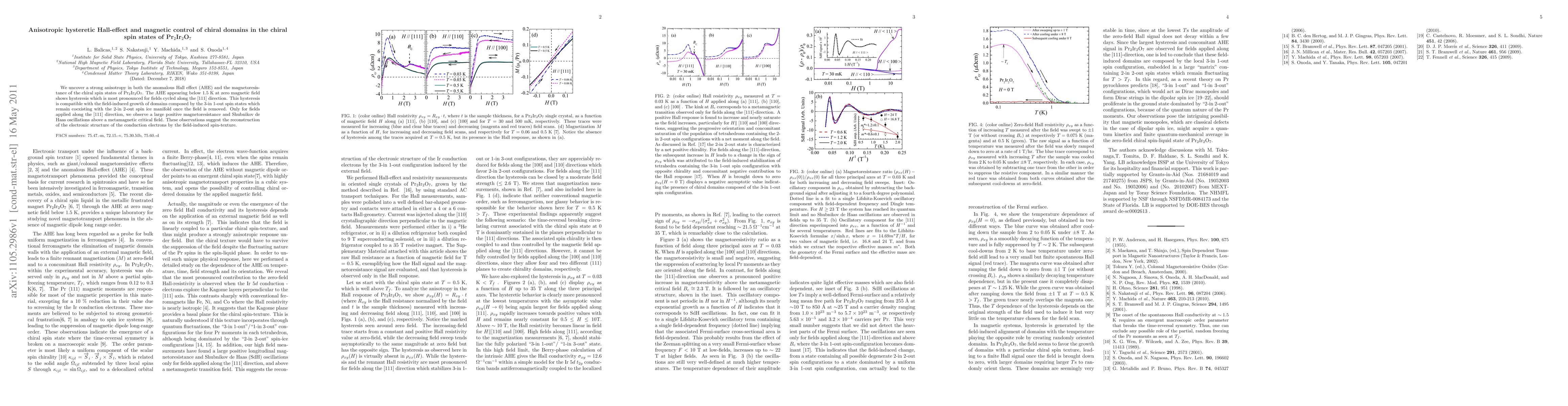 We uncover a strong anisotropy in both the anomalous Hall effect (AHE) and the magnetoresistance of the chiral spin states of Pr$_2$Ir$_2$O$_7$. The AHE appearing below 1.5 K at zero magnetic field shows hysteresis which is most pronounced for fields cycled along the [111] direction. This hysteresis is compatible with the field-induced growth of domains composed by the 3-in 1-out spin states which remain coexisting with the 2-in 2-out spin ice manifold once the field is removed. Only for fields applied along the [111] direction, we observe a large positive magnetoresistance and Shubnikov de Haas oscillations above a metamagnetic critical field. These observations suggest the reconstruction of the electronic structure of the conduction electrons by the field-induced spin-texture.