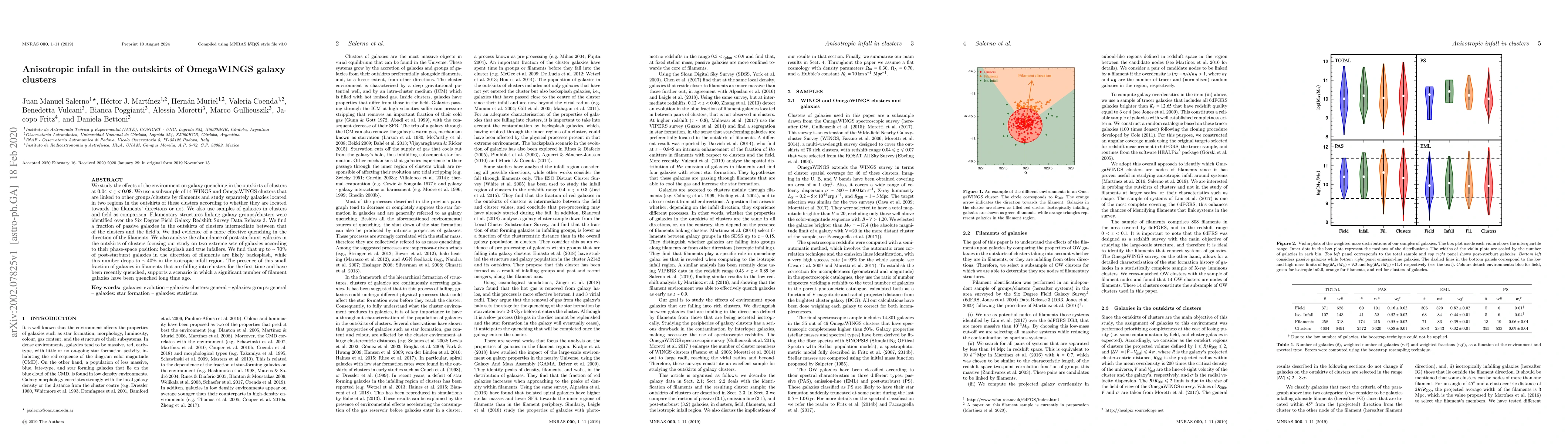 We study the effects of the environment on galaxy quenching in the outskirts of clusters at $0.04 < z < 0.08$. We use a subsample of 14 WINGS and OmegaWINGS clusters that are linked to other groups/clusters by filaments and study separately galaxies located in two regions in the outskirts of these clusters according to whether they are located towards the filaments' directions or not. We also use samples of galaxies in clusters and field as comparison. Filamentary structures linking galaxy groups/clusters were identified over the Six Degree Field Galaxy Redshift Survey Data Release 3. We find a fraction of passive galaxies in the outskirts of clusters intermediate between that of the clusters and the field's. We find evidence of a more effective quenching in the direction of the filaments. We also analyse the abundance of post-starburst galaxies in the outskirts of clusters focusing our study on two extreme sets of galaxies according to their phase-space position: backsplash and true infallers. We find that up to $\sim70\%$ of post-starburst galaxies in the direction of filaments are likely backsplash, while this number drops to $\sim40\%$ in the isotropic infall region. The presence of this small fraction of galaxies in filaments that are falling into clusters for the first time and have been recently quenched, supports a scenario in which a significant number of filament galaxies have been quenched long time ago.