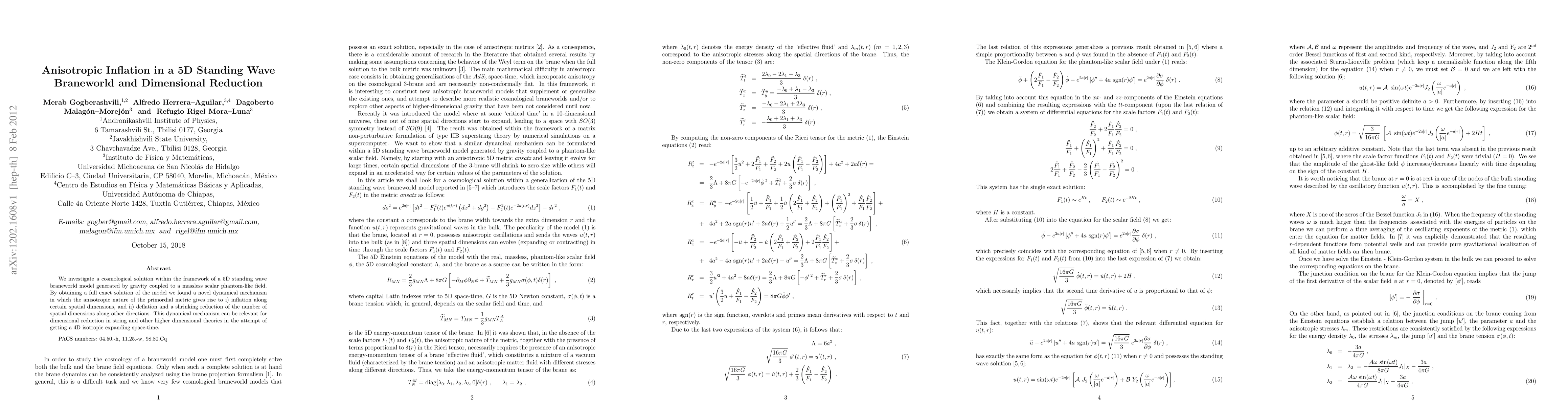 This paper explores a 5D standing wave braneworld model where gravity interacts with a massless scalar field, leading to anisotropic inflation in some dimensions and deflation in others. The study reveals a novel mechanism for dimensional reduction, potentially aiding in achieving a 4D isotropic expanding space-time.