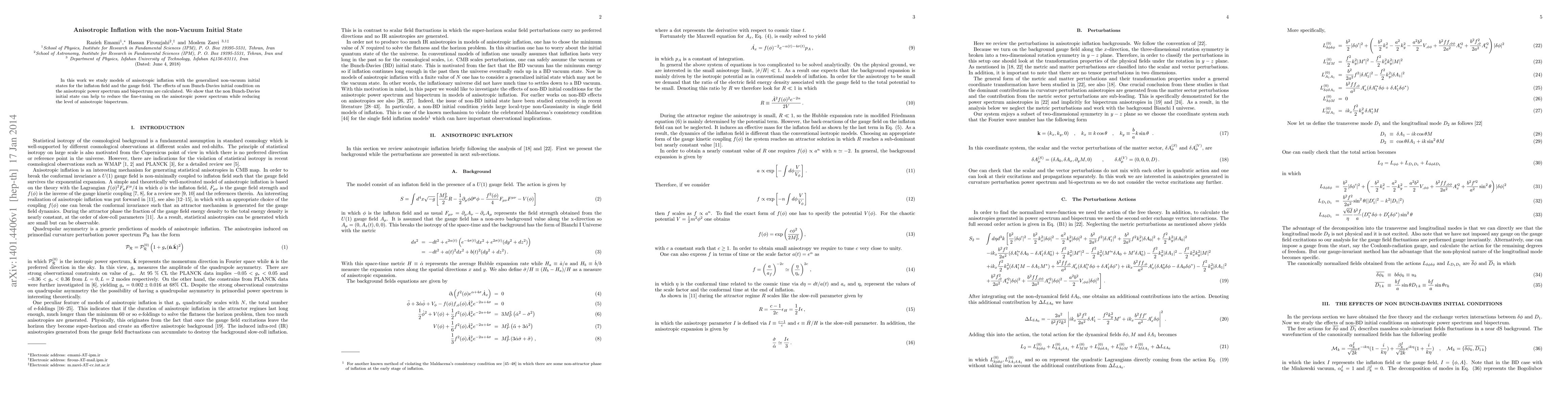 In this work we study models of anisotropic inflation with the generalized non-vacuum initial states for the inflaton field and the gauge field. The effects of non Bunch-Davies initial condition on the anisotropic power spectrum and bispectrum are calculated. We show that the non Bunch-Davies initial state can help to reduce the fine-tuning on the anisotropic power spectrum while reducing the level of anisotropic bispectrum.