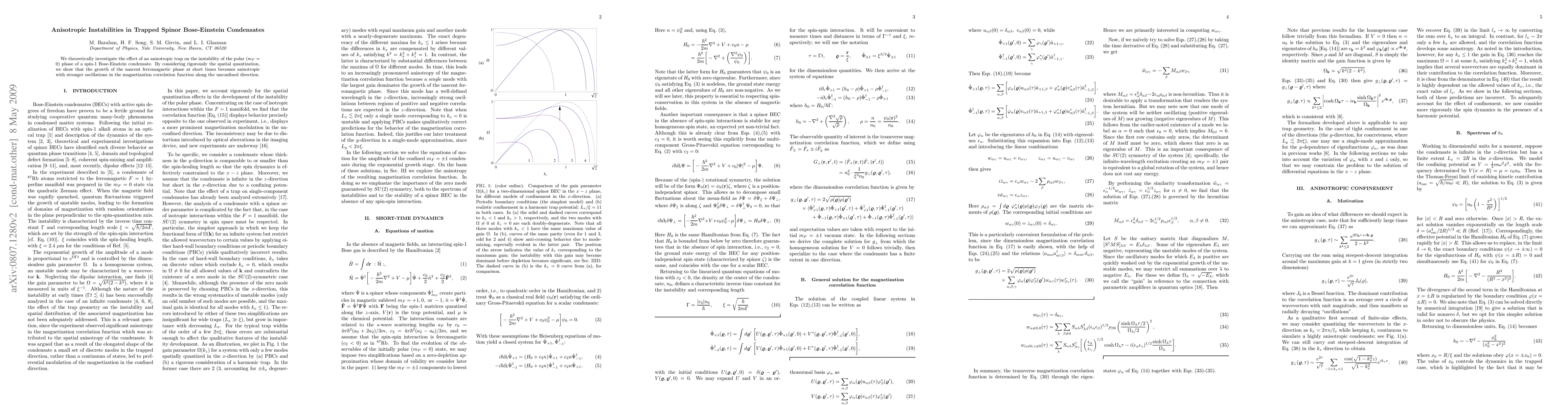 We theoretically investigate the effect of an anisotropic trap on the instability of the polar $(m_F=0)$ phase of a spin-1 Bose-Einstein condensate. By considering rigorously the spatial quantization, we show that the growth of the nascent ferromagnetic phase at short times becomes anisotropic with stronger oscillations in the magnetization correlation function along the unconfined direction.