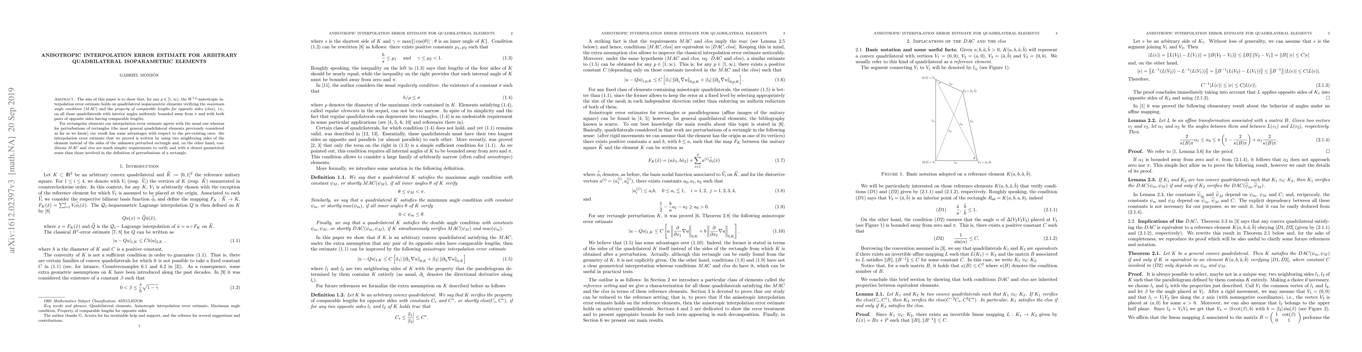 The aim of this paper is to show that, for any $p \in [1,\infty)$, the $W^{1,p}$-anisotropic interpolation error estimate holds on quadrilateral isoparametric elements verifying the maximum angle condition ($MAC$) and the property of comparable lengths for opposite sides ($clos$), i.e., on all those quadrilaterals with interior angles uniformly bounded away from $\pi$ and with both pairs of opposite sides having comparable lengths. For rectangular elements our interpolation error estimate agrees with the usual one whereas for perturbations of rectangles (the most general quadrilateral elements previously considered as far as we know) our result has some advantages with respect to the pre-existing ones: the interpolation error estimate that we proved is written by using two neighboring sides of the element instead of the sides of the unknown perturbed rectangle and, on the other hand, conditions $MAC$ and $clos$ are much simpler requirements to verify and with a clearer geometrical sense than those involved in the definition of perturbations of a rectangle.