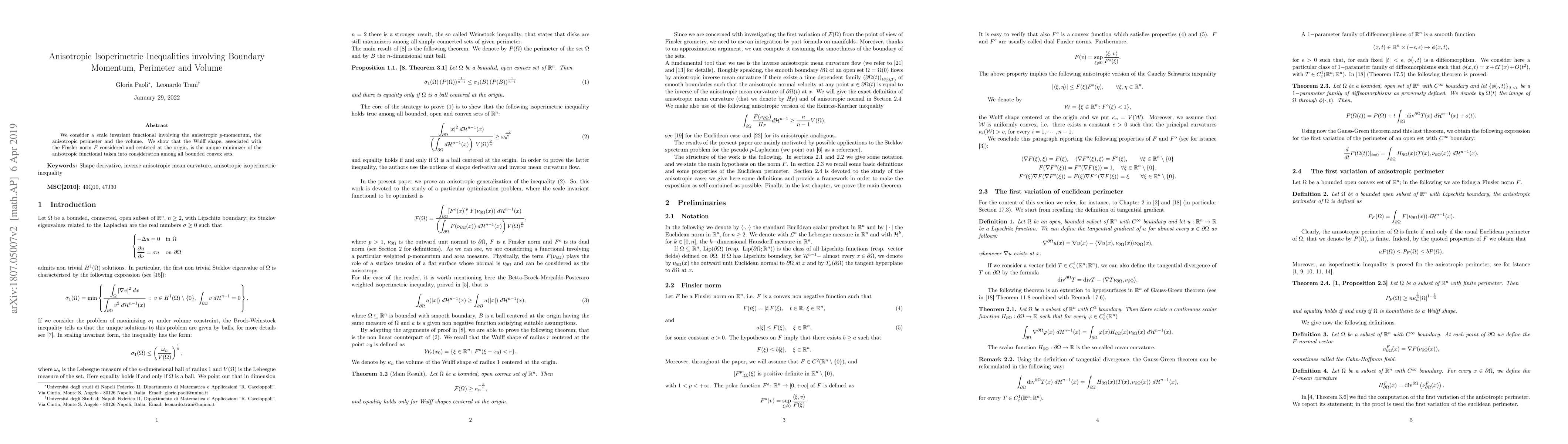 Researchers prove that a convex shape with anisotropic properties is the unique minimizer of a functional involving perimeter and volume. This finding has implications for understanding optimal shapes in various fields, including physics and engineering.