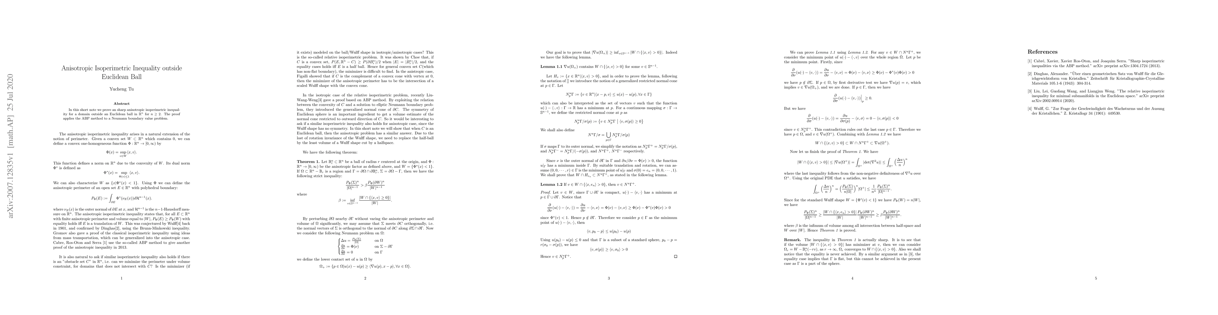 We prove an sharp anisotropic isoperimetric inequality for a domain outside an Euclidean ball in $\mathbb{R}^n$ for $n\geq 2$. The proof applies the ABP method to a Neumann boundary value problem.