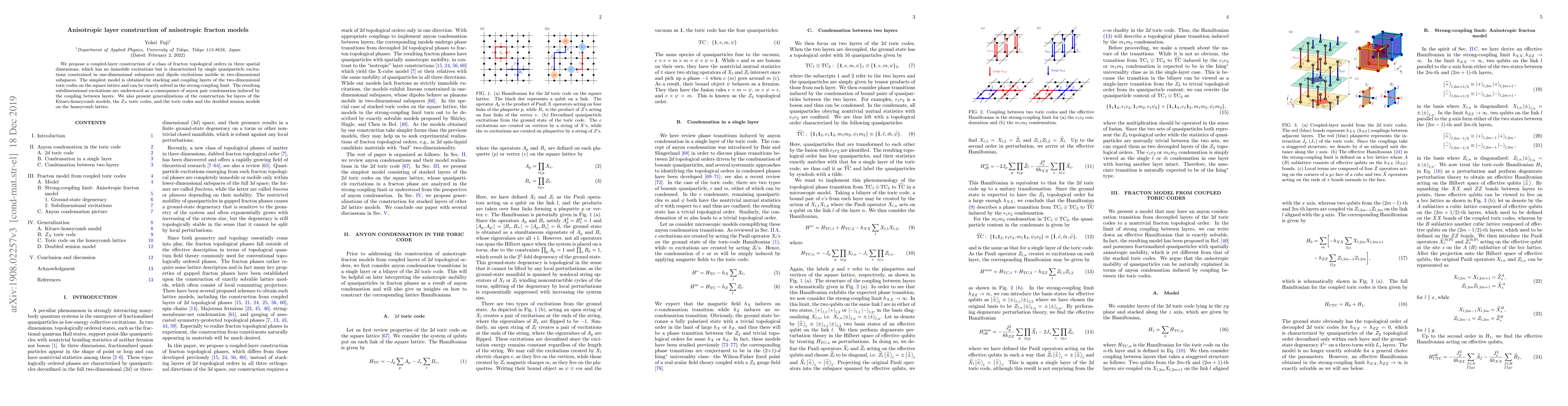 This paper proposes a method to construct anisotropic fracton models in three dimensions by stacking and coupling layers of two-dimensional toric codes, leading to spatially anisotropic quasiparticle excitations. The simplest model is exactly solvable in the strong-coupling limit, with fracton excitations arising from anyon pair condensation between layers.