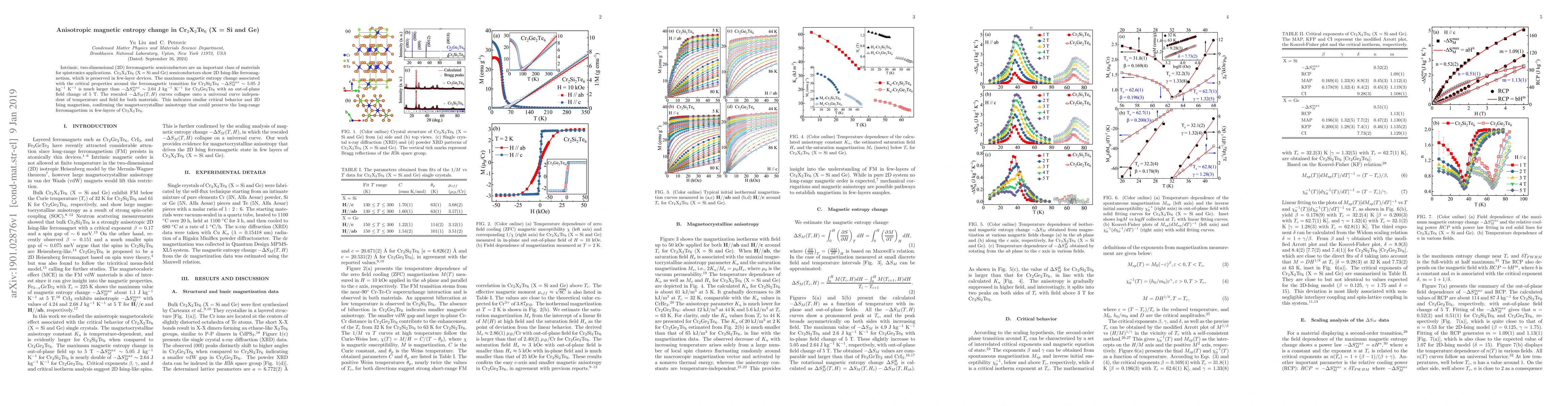 Cr$_2$X$_2$Te$_6$ (X = Si and Ge) semiconductors exhibit 2D Ising-like ferromagnetism with anisotropic magnetic entropy changes, showing a higher magnetic entropy change in Cr$_2$Si$_2$Te$_6$ compared to Cr$_2$Ge$_2$Te$_6$, yet both materials demonstrate similar critical behavior and 2D magnetism.