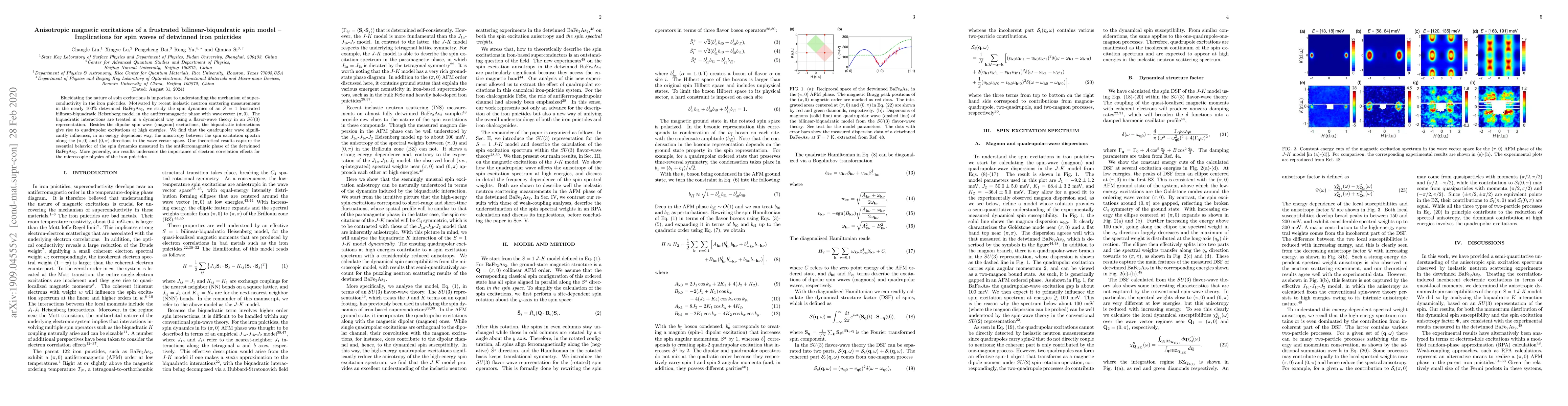 This paper explores spin dynamics in a frustrated bilinear-biquadratic spin model, revealing anisotropic magnetic excitations influenced by biquadratic interactions. The study highlights the significance of quadrupolar excitations in the spin wave spectra of detwinned iron pnictides, providing insights into superconductivity mechanisms.