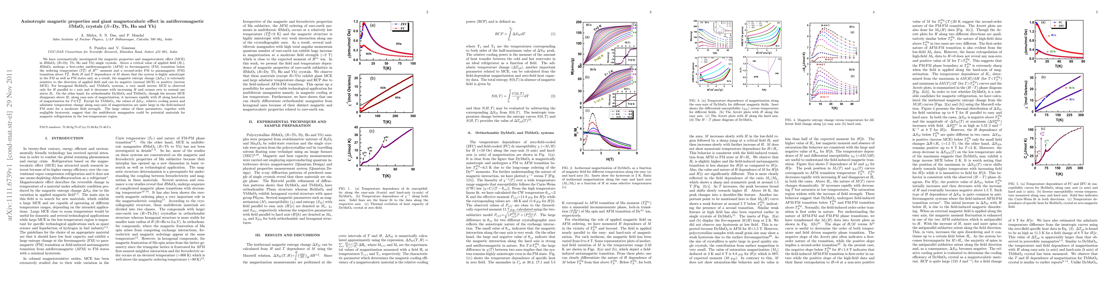 This paper investigates the magnetic properties and magnetocaloric effect in $R$MnO$_3$ ($R$=Dy, Tb, Ho, Yb) crystals, revealing anisotropic transitions and significant magnetocaloric effects, especially in DyMnO$_3$ and TbMnO$_3$, suggesting potential for magnetic refrigeration applications.