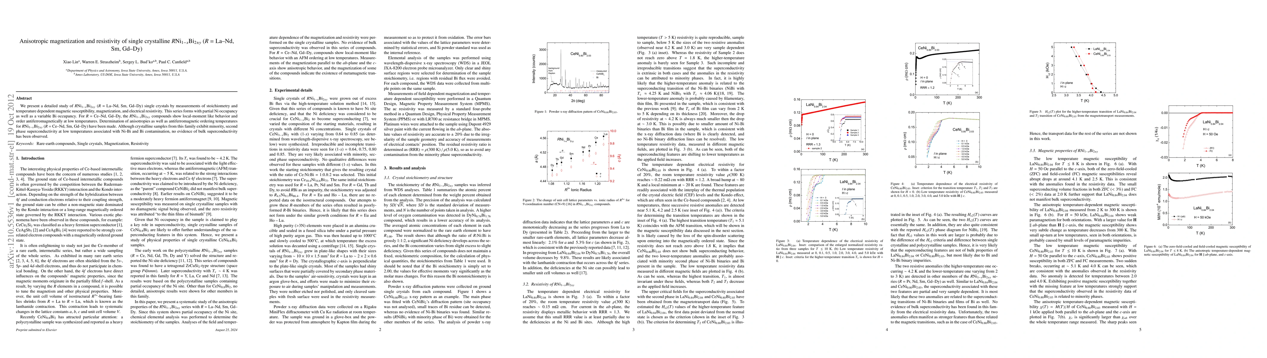 This study investigates the anisotropic magnetization and resistivity in single crystalline RNi1-xBi2+-y (R = La-Nd, Sm, Gd-Dy) compounds, revealing local-moment like behavior and antiferromagnetic ordering at low temperatures, alongside minor superconductivity linked to contamination.