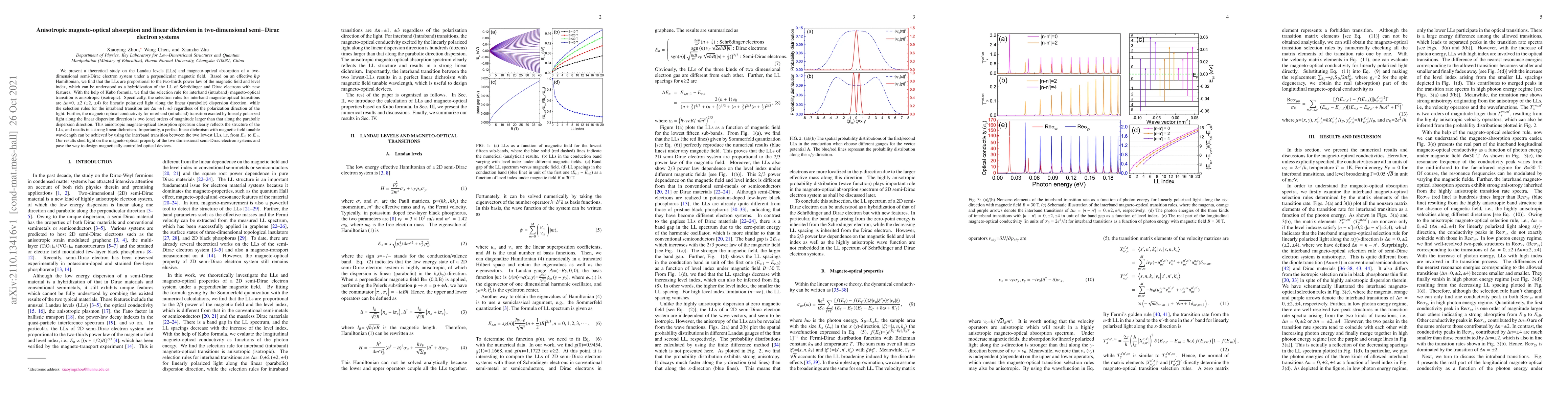This paper theoretically investigates the magneto-optical absorption and linear dichroism in two-dimensional semi-Dirac electron systems, revealing anisotropic selection rules for interband transitions and isotropic rules for intraband transitions. The study highlights the potential for magnetic-field tunable linear dichroism, paving the way for the design of magnetically controlled optical devices.