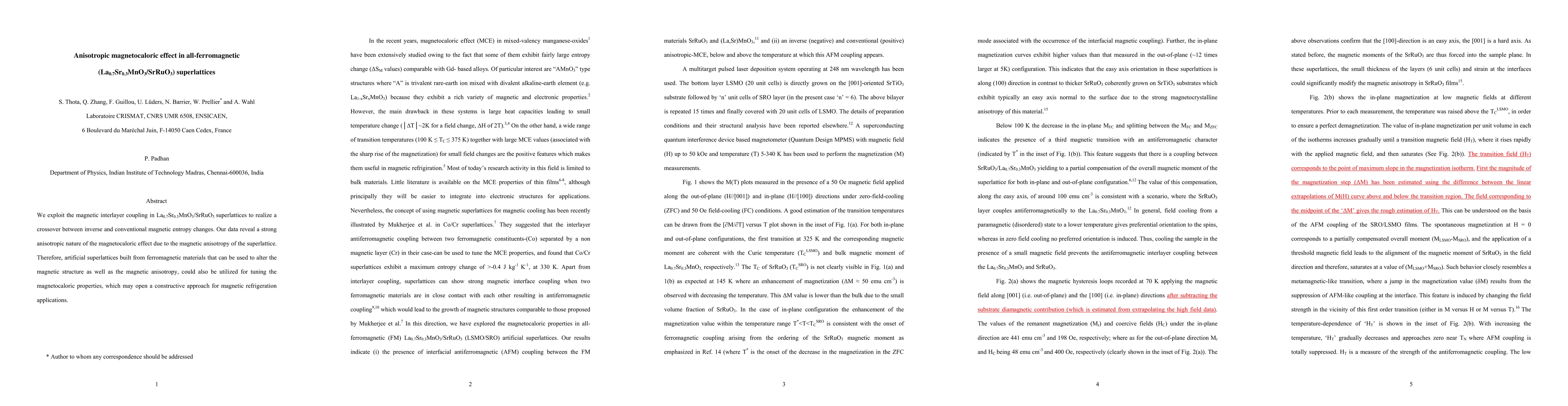 This study investigates the anisotropic magnetocaloric effect in La0.7Sr0.3MnO3/SrRuO3 superlattices, revealing a crossover between inverse and conventional magnetic entropy changes due to magnetic interlayer coupling. The findings suggest that tuning magnetic structure and anisotropy in such superlattices could optimize magnetocaloric properties for magnetic refrigeration applications.