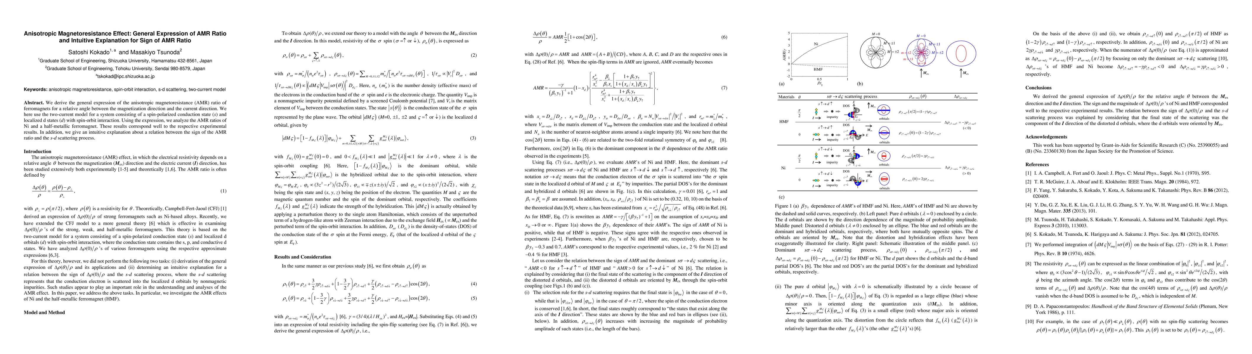This paper derives the general expression for the anisotropic magnetoresistance (AMR) ratio in ferromagnets, employing a two-current model that includes spin-polarized conduction and localized d states. It provides an intuitive explanation for the sign of AMR ratio linked to s-d scattering, and validates the model with experimental results for Ni and a half-metallic ferromagnet.