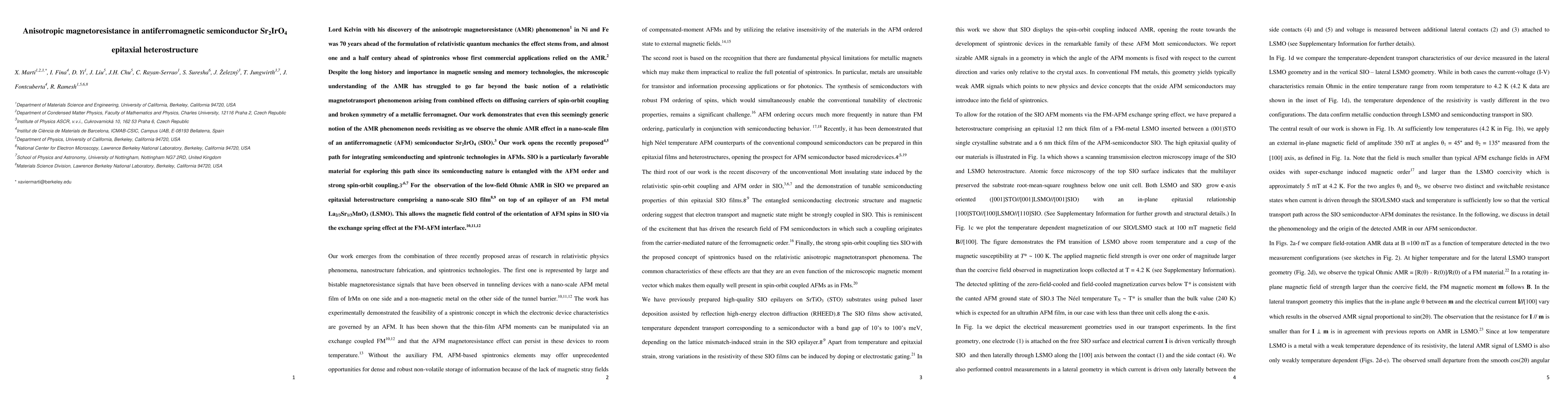 Researchers discovered anisotropic magnetoresistance in a nano-scale film of antiferromagnetic semiconductor Sr2IrO4, a material that combines semiconducting and spintronic technologies in a novel way.