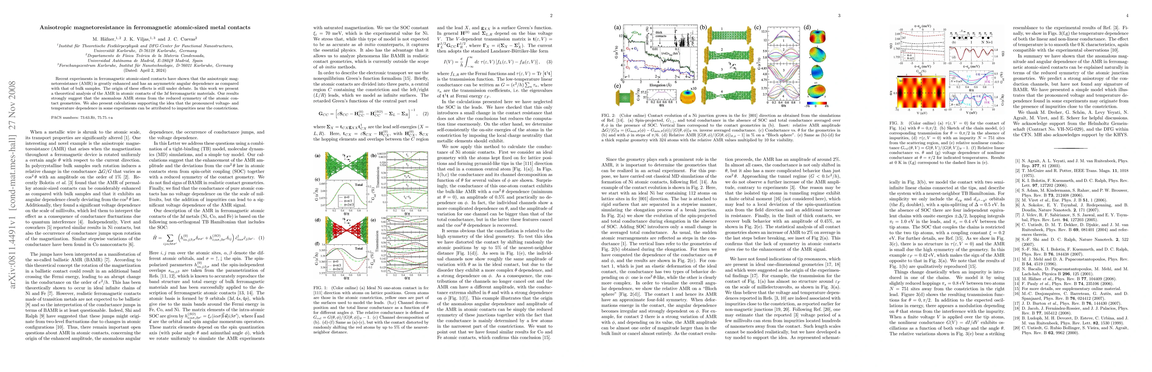 This paper presents a theoretical analysis suggesting that enhanced anisotropic magnetoresistance in ferromagnetic atomic-sized metal contacts arises from reduced symmetry in atomic geometries, with additional support for impurity effects near constrictions causing voltage- and temperature-dependent behavior.