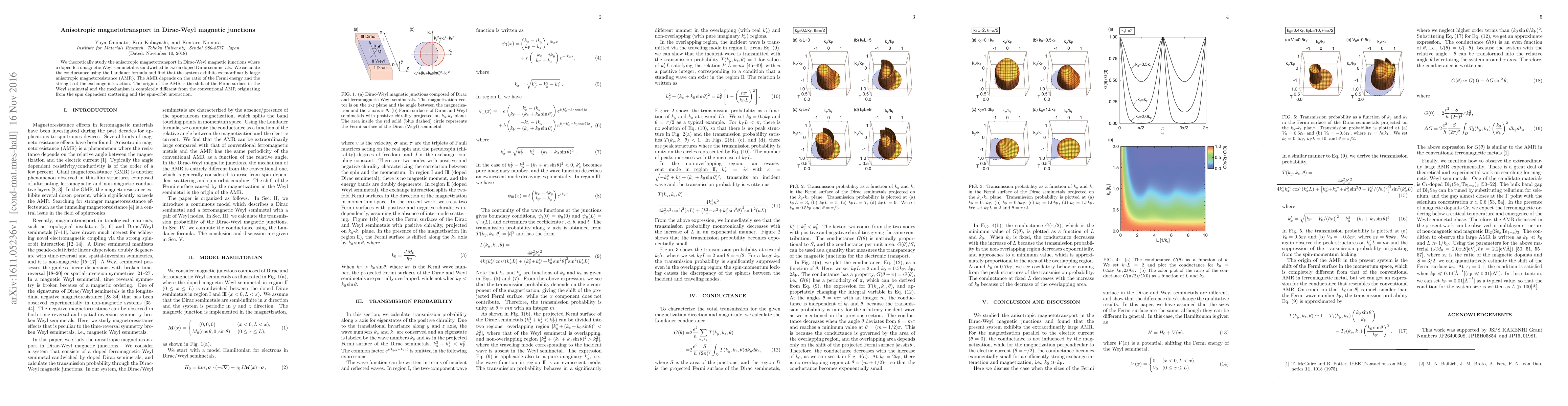 The study reveals anisotropic magnetotransport in Dirac-Weyl magnetic junctions, demonstrating significant anisotropic magnetoresistance (AMR) driven by the Fermi surface shift in the Weyl semimetal, distinct from conventional AMR mechanisms. The AMR's magnitude is influenced by the Fermi energy and exchange interaction strength.