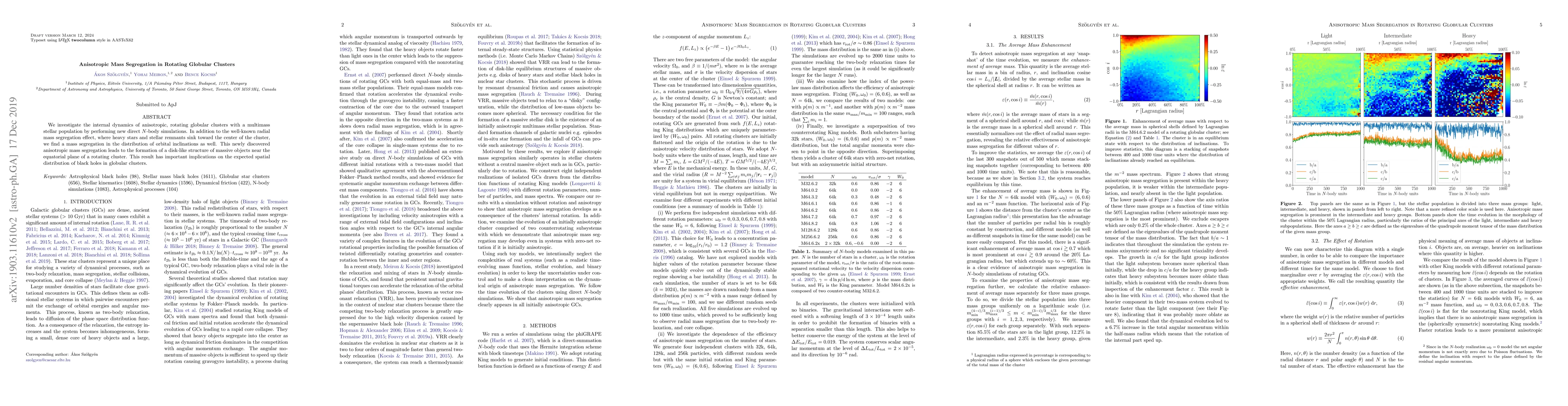 This study reveals anisotropic mass segregation in rotating globular clusters, showing that heavy stars form a disk-like structure near the equatorial plane due to orbital inclination segregation, in addition to the traditional radial segregation. This has significant implications for the spatial distribution of black holes in such clusters.