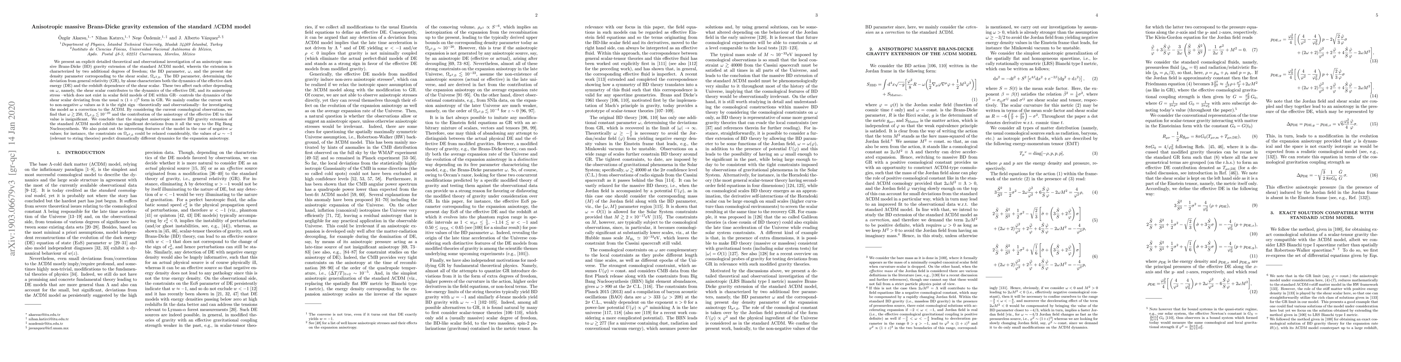 This paper investigates an anisotropic massive Brans-Dicke gravity extension of the standard $\Lambda$CDM model, finding that the model exhibits no significant deviations from $\Lambda$CDM, with $\omega\gtrsim 250$ and $\Omega_{\sigma^2,0}\lesssim 10^{-23}$. The study also highlights unique dynamics for negative $\omega$ values.