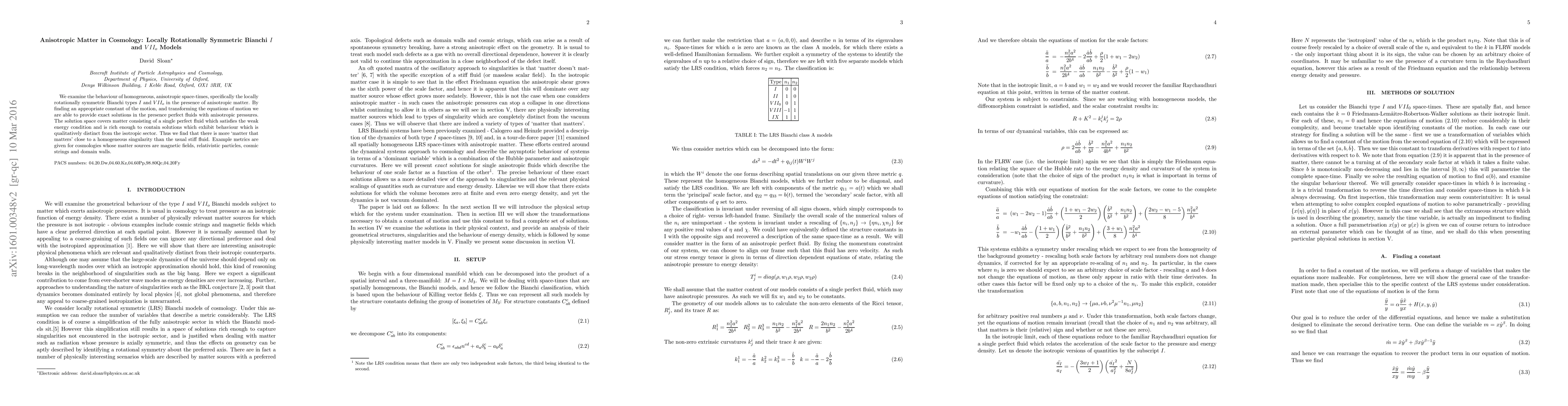We examine the behaviour of homogeneous, anisotropic space-times, specifically the locally rotationally symmetric Bianchi types $I$ and $VII_o$ in the presence of anisotropic matter. By finding an appropriate constant of the motion, and transforming the equations of motion we are able to provide exact solutions in the presence perfect fluids with anisotropic pressures. The solution space covers matter consisting of a single perfect fluid which satisfies the weak energy condition and is rich enough to contain solutions which exhibit behaviour which is qualitatively distinct from the isotropic sector. Thus we find that there is more `matter that matters' close to a homogeneous singularity than the usual stiff fluid. Example metrics are given for cosmologies whose matter sources are magnetic fields, relativistic particles, cosmic strings and domain walls.