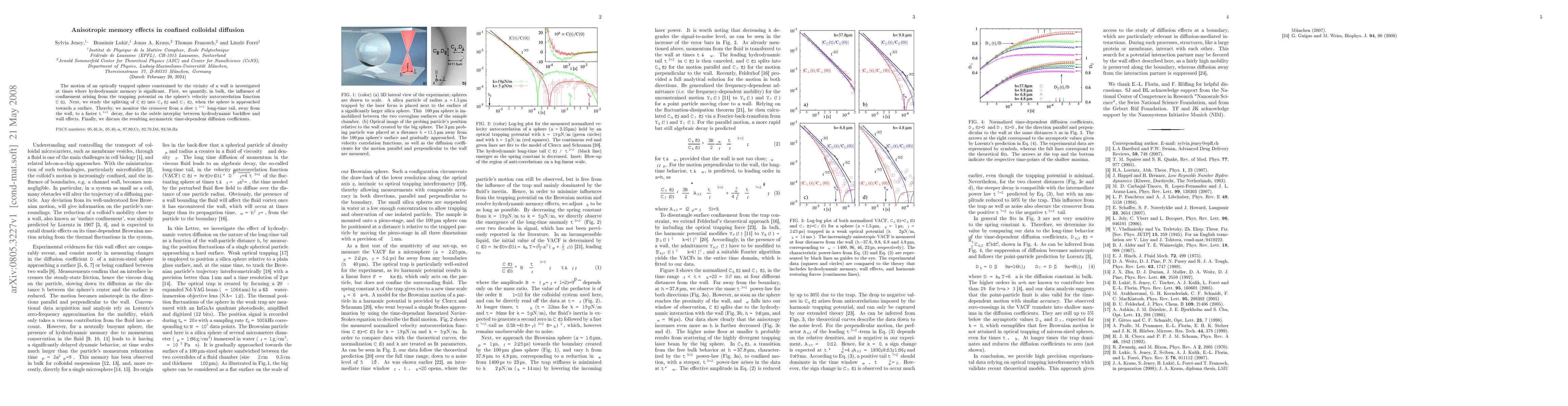 The motion of an optically trapped sphere constrained by the vicinity of a wall is investigated at times where hydrodynamic memory is significant. First, we quantify, in bulk, the influence of confinement arising from the trapping potential on the sphere's velocity autocorrelation function $C(t)$. Next, we study the splitting of $C(t)$ into $C_\parallel(t)$ and $C_\perp(t)$, when the sphere is approached towards a surface. Thereby, we monitor the crossover from a slow $t^{-3/2}$ long-time tail, away from the wall, to a faster $t^{-5/2}$ decay, due to the subtle interplay between hydrodynamic backflow and wall effects. Finally, we discuss the resulting asymmetric time-dependent diffusion coefficients.