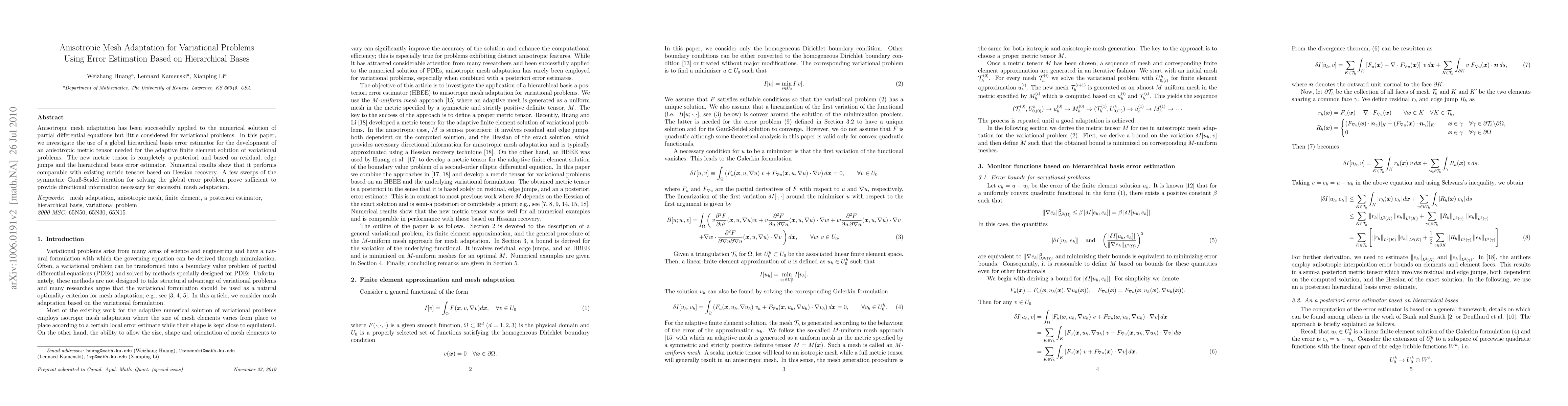 This paper explores the use of a global hierarchical basis error estimator to develop an anisotropic metric tensor for adaptive finite element solutions of variational problems. The proposed a posteriori metric tensor, based on residuals, edge jumps, and hierarchical bases, performs comparably to existing tensors based on Hessian recovery, with minimal computational effort from Gauss-Seidel iterations.