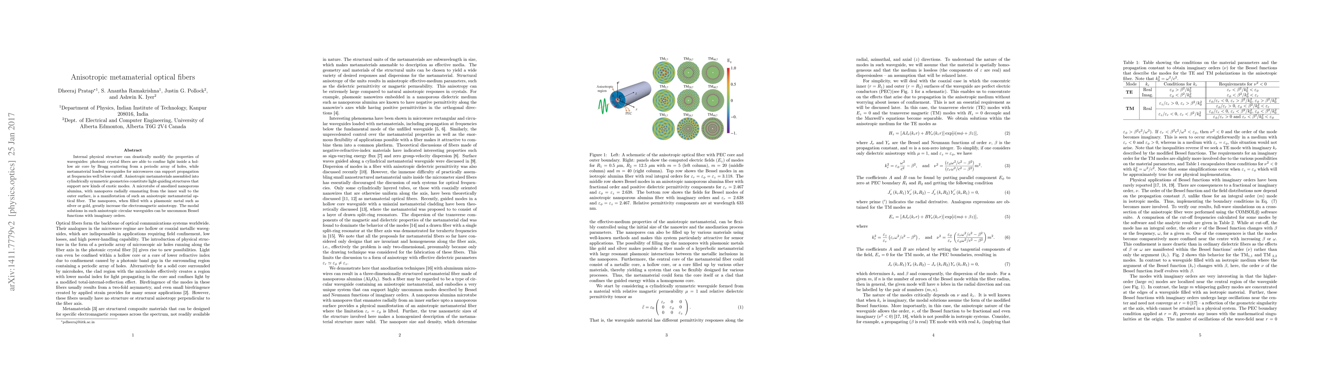 Internal physical structure can drastically modify the properties of waveguides: photonic crystal fibers are able to confine light inside a hollow air core by Bragg scattering from a periodic array of holes, while metamaterial loaded waveguides for microwaves can support propagation at frequencies well below cutoff. Anisotropic metamaterials assembled into cylindrically symmetric geometries constitute light-guiding structures that support new kinds of exotic modes. A microtube of anodized nanoporous alumina, with nanopores radially emanating from the inner wall to the outer surface, is a manifestation of such an anisotropic metamaterial optical fiber. The nanopores, when filled with a plasmonic metal such as silver or gold, greatly increase the electromagnetic anisotropy. The modal solutions in anisotropic circular waveguides can be uncommon Bessel functions with imaginary orders.
