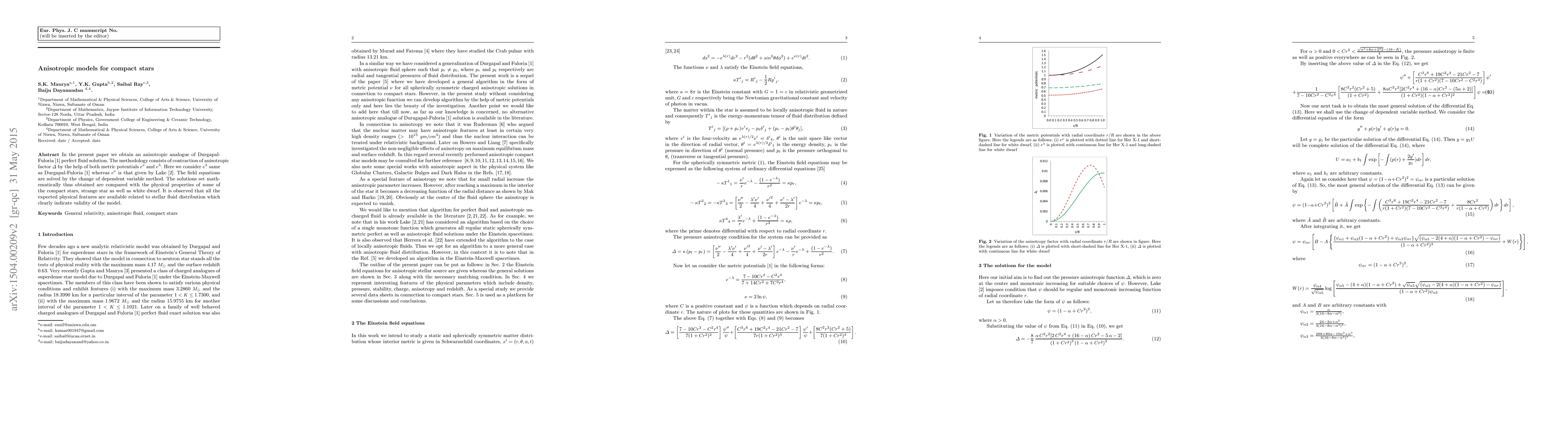 This paper develops an anisotropic analogue of a perfect fluid solution for compact stars, utilizing metric potentials to contract the anisotropic factor. The model's solutions are validated against the physical properties of strange stars and white dwarfs, demonstrating its applicability and accuracy.
