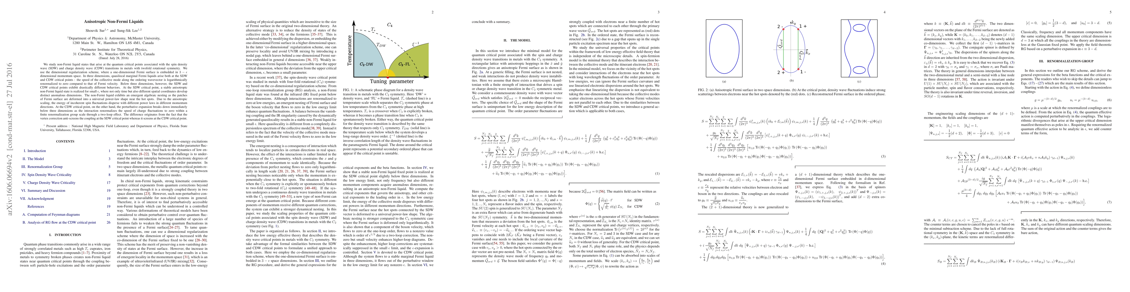 Researchers investigate non-Fermi liquids that arise at quantum critical points in metals with twofold rotational symmetry, finding anisotropic non-Fermi liquid states and drastically different behaviors below three dimensions for spin density wave and charge density wave transitions.