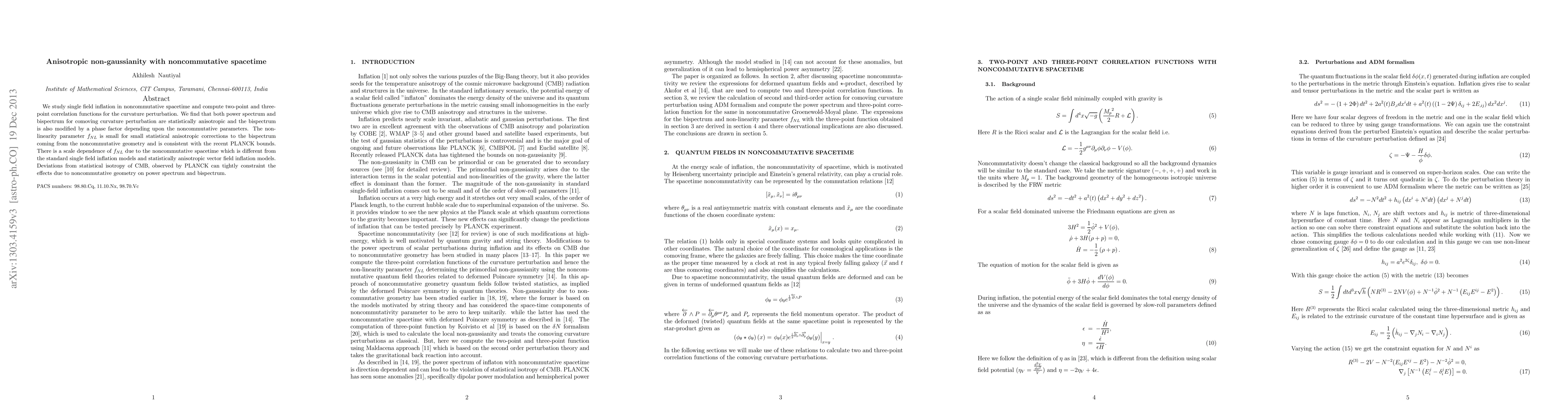 This paper investigates single field inflation in noncommutative spacetime, revealing anisotropic non-Gaussianity in the power spectrum and bispectrum of curvature perturbations. The non-linearity parameter $f_{NL}$ is shown to be small and consistent with PLANCK bounds, with a scale-dependent variation due to noncommutative geometry.
