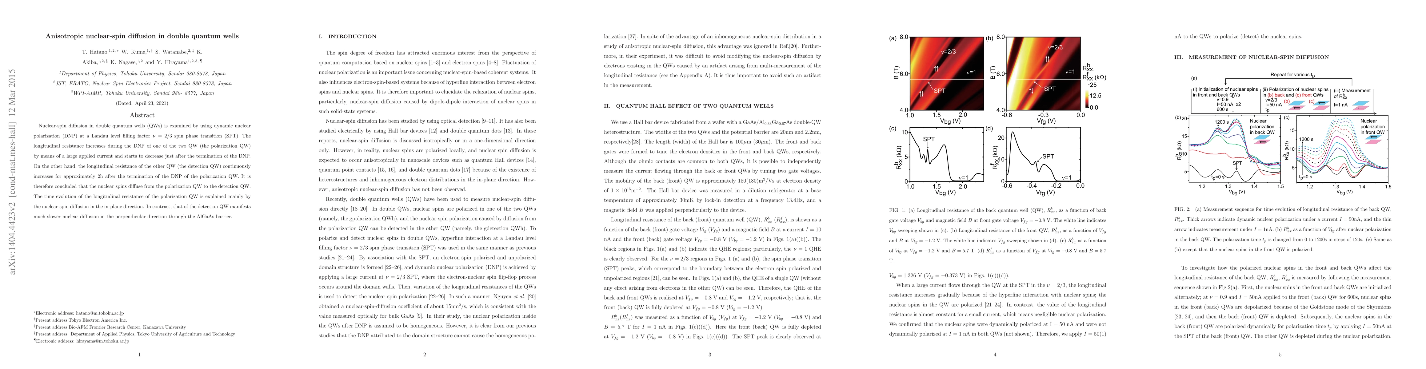 Nuclear spins diffuse from one double quantum well to another during dynamic nuclear polarization, with diffusion rates varying by direction and layer.