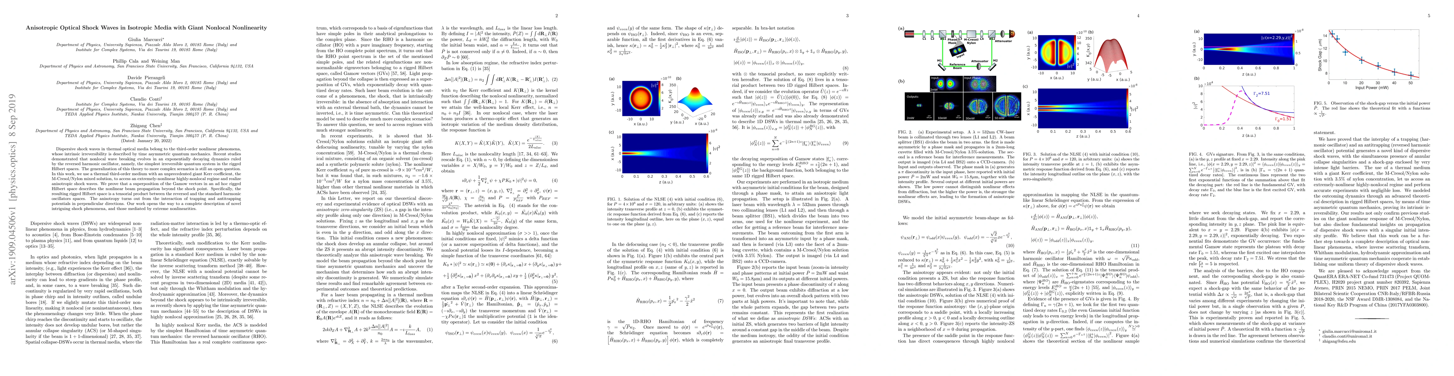 This paper explores anisotropic optical shock waves in an isotropic medium with giant nonlocal nonlinearity, using a thermal third-order medium with an unprecedented Kerr coefficient. The study reveals the emergence of anisotropic shock waves due to interactions between trapping and antitrapping potentials, described by a superposition of Gamow vectors in a tensorial product rigged Hilbert space.