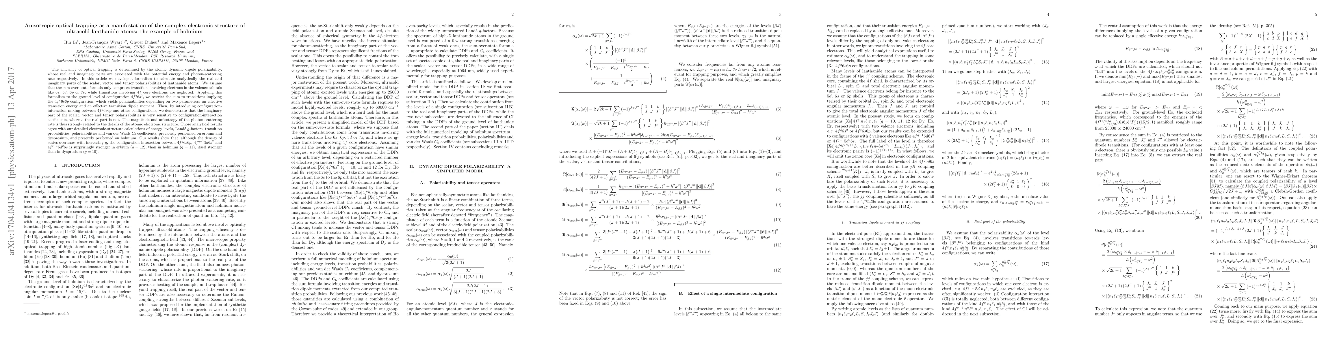 This paper develops a formalism to analytically calculate the polarizabilities of lanthanide atoms, focusing on holmium, and shows that the optical trapping efficiency is strongly influenced by the atomic electronic structure, particularly configuration-interaction effects. The results align with previous calculations for erbium and dysprosium, revealing stronger configuration interactions in erbium than in holmium.