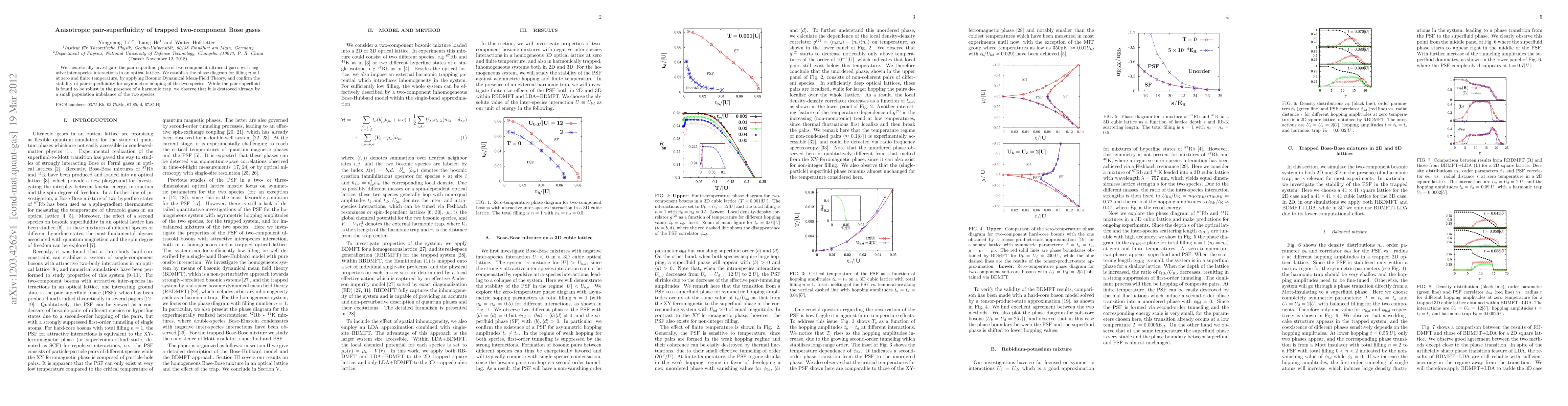 We theoretically investigate the pair-superfluid phase of two-component ultracold gases with negative inter-species interactions in an optical lattice. We establish the phase diagram for filling $n=1$ at zero and finite temperature, by applying Bosonic Dynamical Mean-Field Theory, and confirm the stability of pair-superfluidity for asymmetric hopping of the two species. While the pair superfluid is found to be robust in the presence of a harmonic trap, we observe that it is destroyed already by a small population imbalance of the two species.