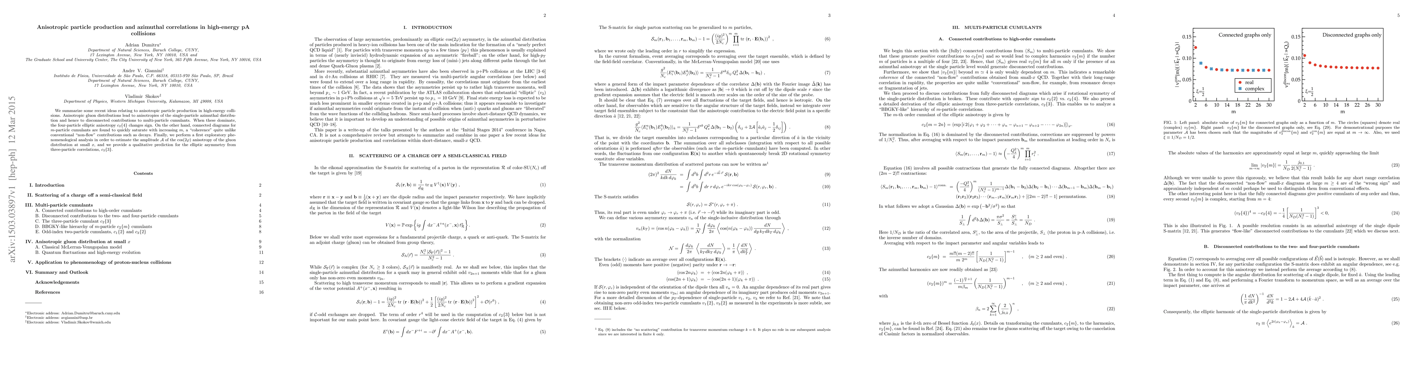 We summarize some recent ideas relating to anisotropic particle production in high-energy collisions. Anisotropic gluon distributions lead to anisotropies of the single-particle azimuthal distribution and hence to disconnected contributions to multi-particle cumulants. When these dominate, the four-particle elliptic anisotropy $c_2\{4\}$ changes sign. On the other hand, connected diagrams for $m$-particle cumulants are found to quickly saturate with increasing $m$, a ``coherence'' quite unlike conventional ``non-flow'' contributions such as decays. Finally, we perform a first exploratory phenomenological analysis in order to estimate the amplitude ${\cal A}$ of the $\cos(2\varphi)$ anisotropy of the gluon distribution at small $x$, and we provide a qualitative prediction for the elliptic asymmetry from three-particle correlations, $c_2\{3\}$.
