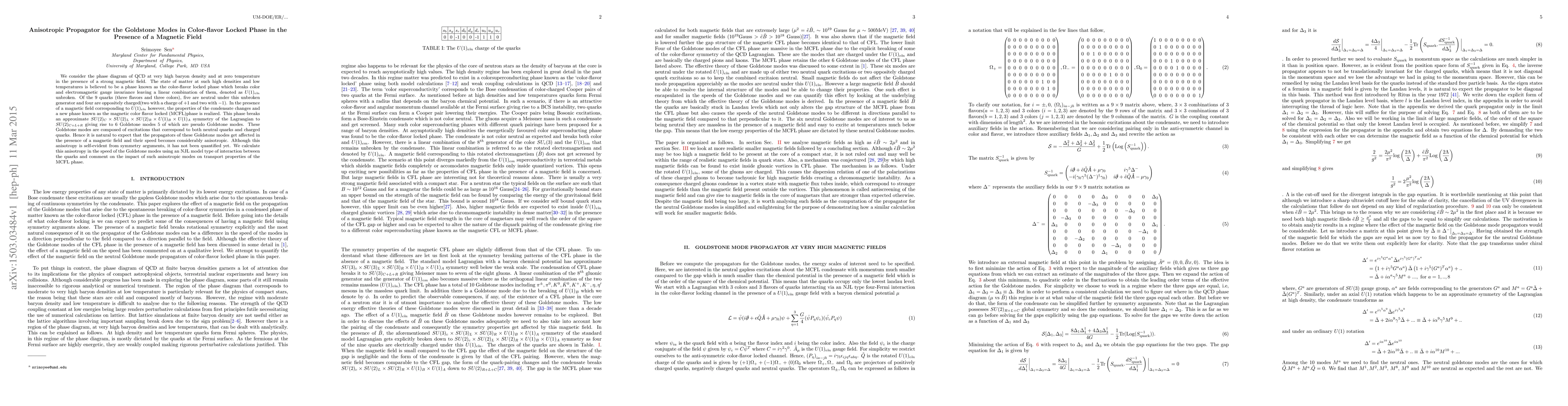 This paper investigates the anisotropic propagator of Goldstone modes in the magnetic color-flavor locked phase of QCD at high baryon density and zero temperature, revealing how the presence of a magnetic field affects the speed of these modes. The study uses an NJL model to quantify the anisotropy and discusses its implications on the transport properties of the phase.