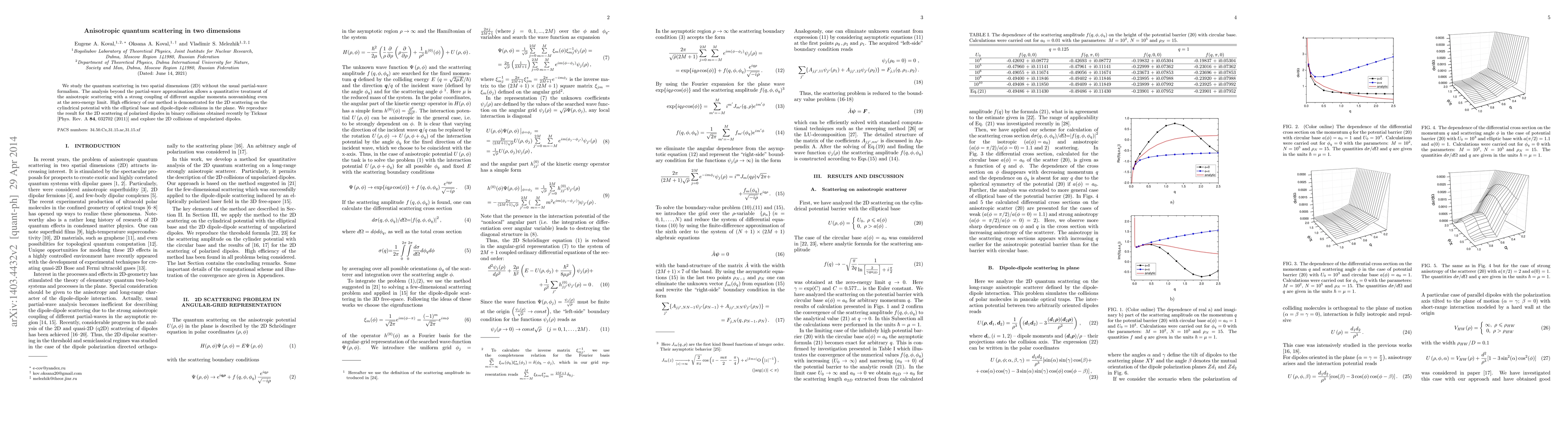 We study the quantum scattering in two spatial dimensions (2D). Our computational scheme allows to quantitatively analyze the scattering parameters for the strong anisotropy of the interaction potential. High efficiency of the method is demonstrated for the 2D scattering on the cylindrical potential with the elliptical base and dipole-dipole collisions in the plane. We reproduce the result for the 2D scattering of polarized dipoles in binary collisions obtained recently by Ticknor [Phys. Rev. A {\bf 84}, 032702 (2011)] and the 2D collisions of unpolarized dipoles.