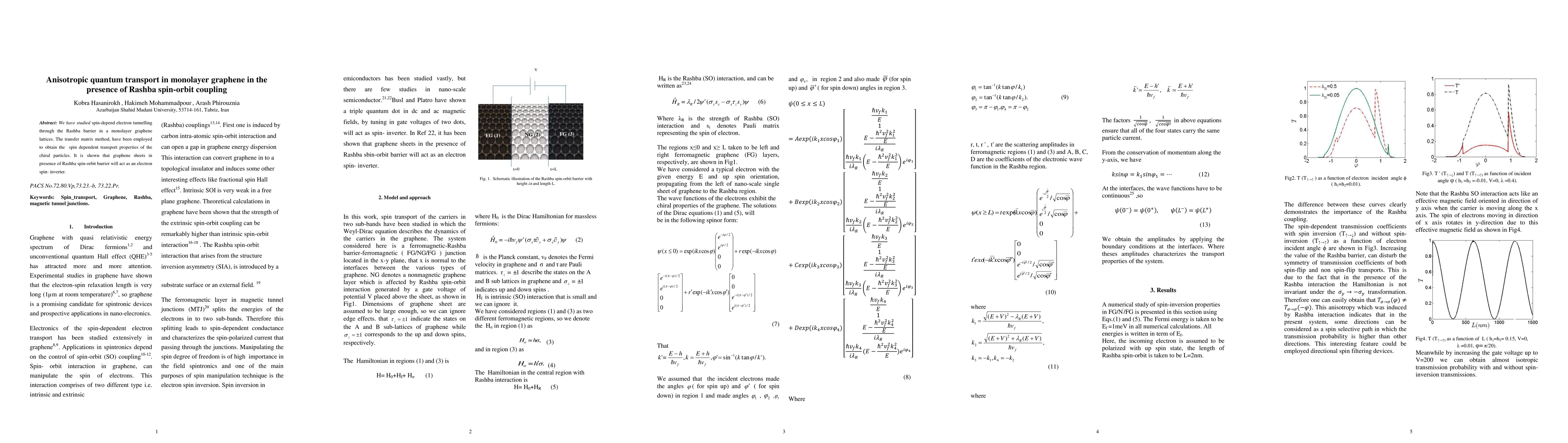 Summary: This study investigates electron tunneling through a Rashba spin-orbit barrier in monolayer graphene, revealing that it functions as an electron spin inverter, with findings obtained using the transfer matrix method to analyze anisotropic quantum transport.