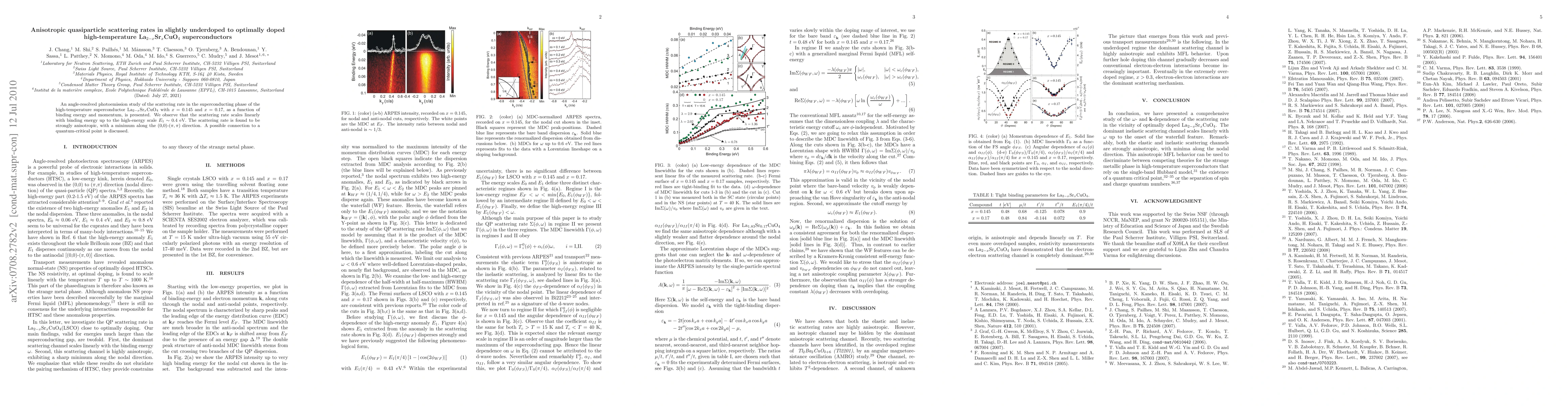 Researchers studied how electrons move in a superconducting material called ±SCO, finding that the rate at which they scatter scales linearly with energy up to a certain point, and is anisotropic, meaning it varies depending on direction.