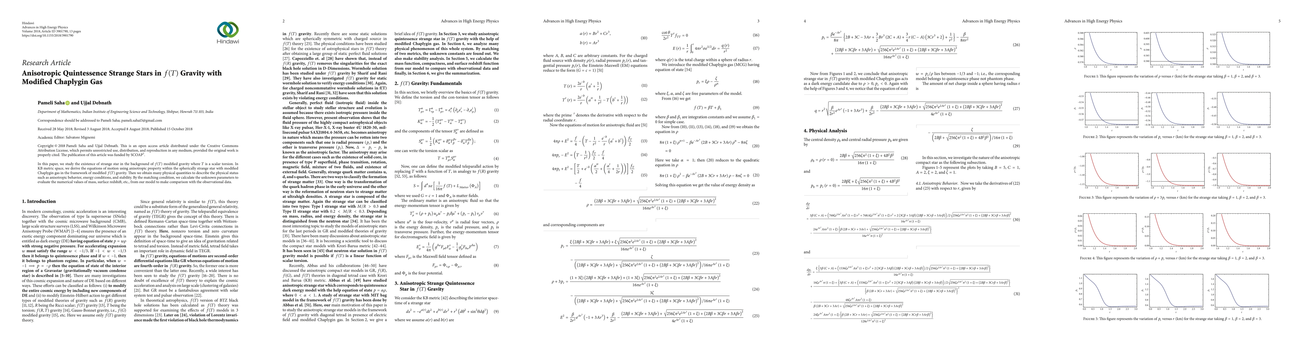This paper explores the existence of strange stars in f(T) modified gravity, deriving equations of motion for anisotropic strange stars filled with modified Chaplygin gas. It calculates physical quantities like mass and surface redshift, comparing the results to observational data.