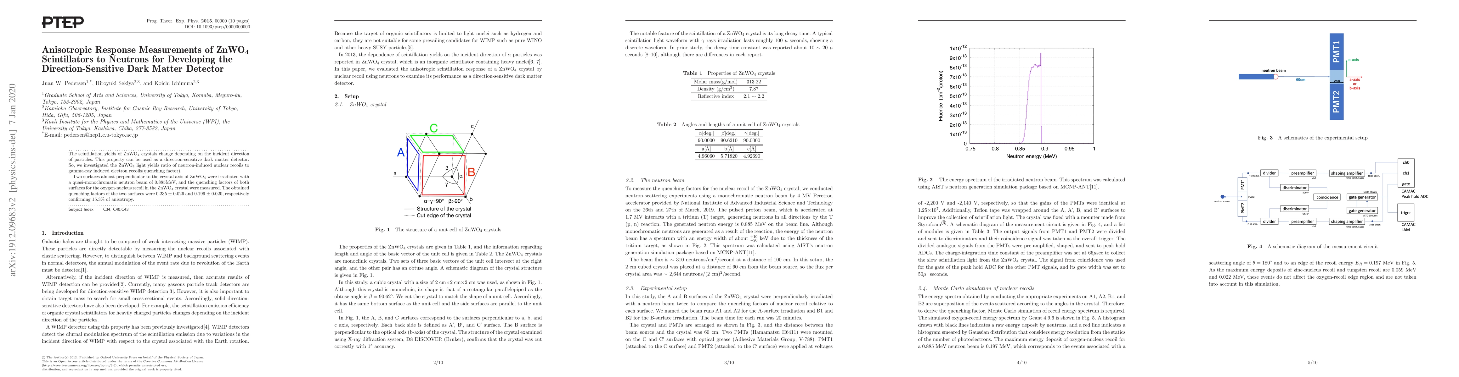 The paper presents a detailed measurement and analysis of the quenching factors for ZnWO$_4$ scintillators, confirming their anisotropic response to neutron-induced nuclear recoils, which is essential for direction-sensitive dark matter detection.