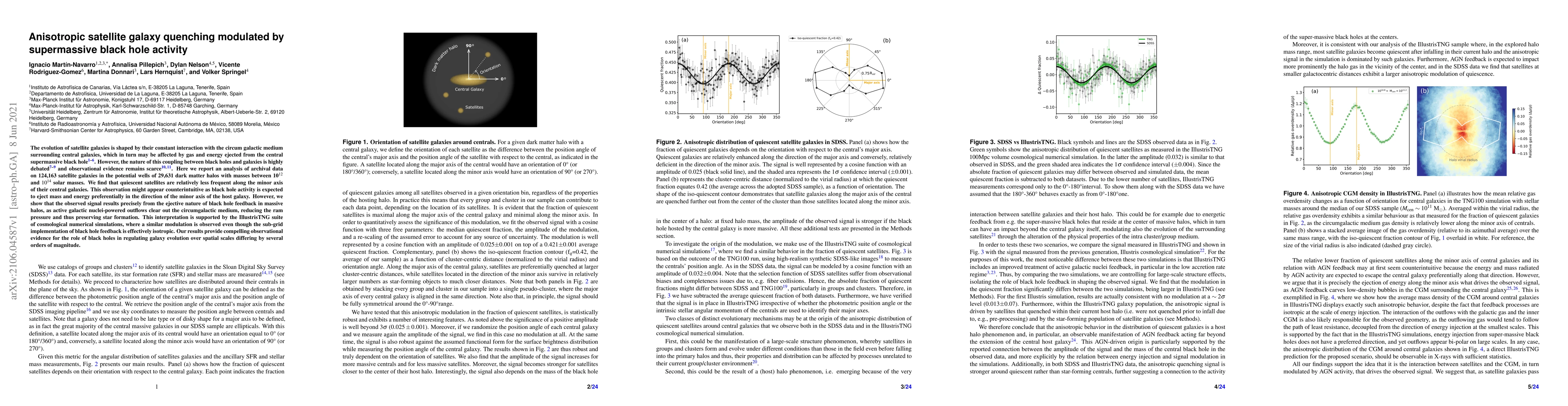 Researchers analyzed 124,163 satellite galaxies to find that quiescent satellites are less frequent along the minor axis of their central galaxies, suggesting black hole activity regulates galaxy evolution.