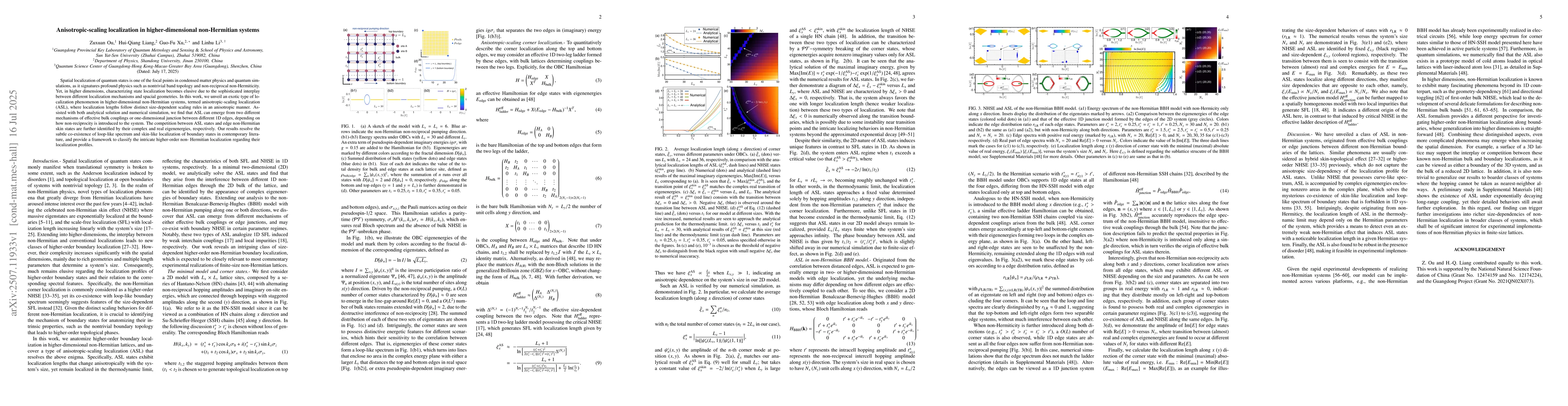 Spatial localization of quantum states is one of the focal points in condensed matter physics and quantum simulations, as it signatures profound physics such as nontrivial band topology and non-reciprocal non-Hermiticity. Yet, in higher dimensions, characterizing state localization becomes elusive due to the sophisticated interplay between different localization mechanisms and spacial geometries. In this work, we unveil an exotic type of localization phenomenon in higher-dimensional non-Hermitian systems, termed anisotropic-scaling localization (ASL), where localization lengths follow distinct size-dependent scaling rules in an anisotropic manner. Assisted with both analytical solution and numerical simulation, we find that ASL can emerge from two different mechanisms of effective bulk couplings or one-dimensional junction between different 1D edges, depending on how non-reciprocity is introduced to the system. The competition between ASL states and edge non-Hermitian skin states are further identified by their complex and real eigenenergies, respectively. Our results resolve the subtle co-existence of loop-like spectrum and skin-like localization of boundary states in contemporary literature, and provide a framework to classify the intricate higher-order non- Hermitian localization regarding their localization profiles.
