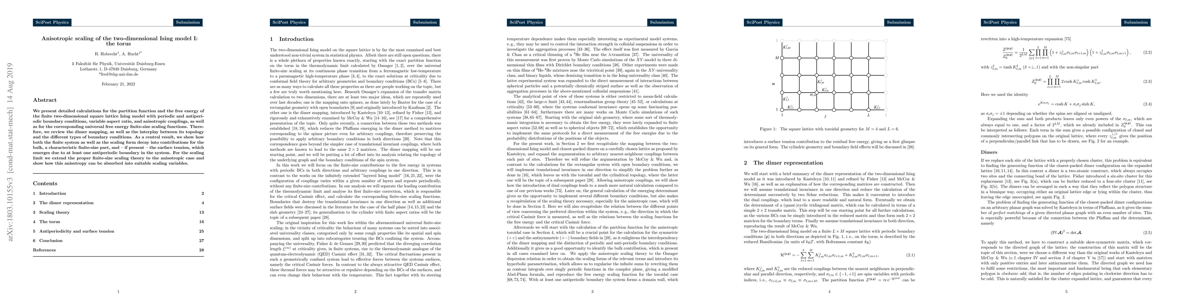 Researchers calculate partition function and free energy of 2D Ising model with anisotropic couplings and variable aspect ratio, showing how finite-size scaling decays into bulk contribution and surface tension for specific boundary conditions.