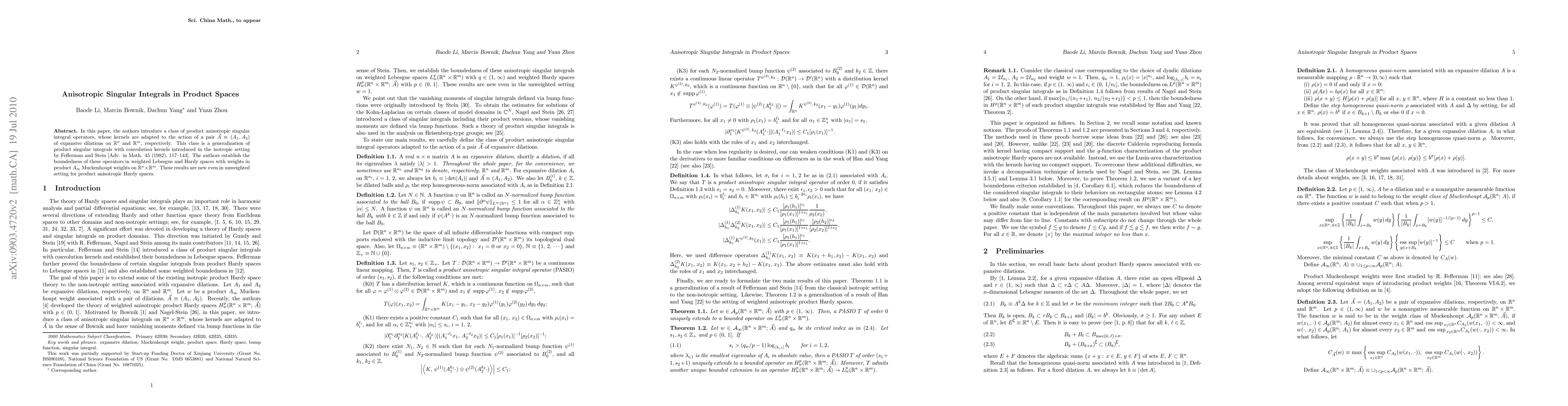 This paper introduces anisotropic singular integrals on product spaces with dilations adapted to expansive transformations, and establishes their boundedness on various function spaces, including $L^q$ and Hardy spaces, under specific Muckenhoupt weight conditions. The results are novel even when the weights are uniform.