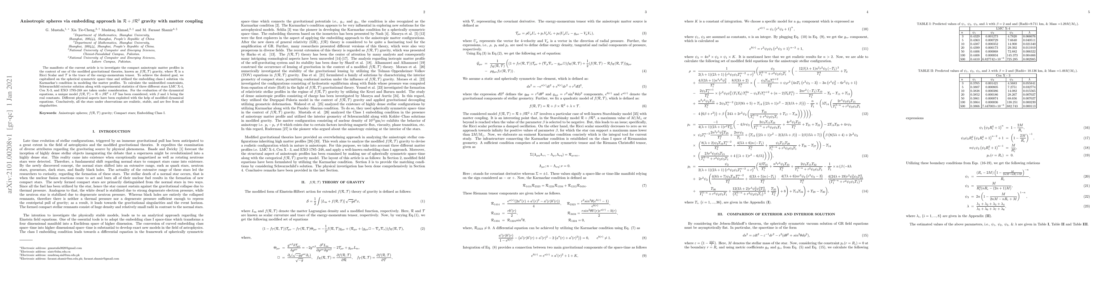 This research paper investigates anisotropic matter profiles in a modified gravity theory called $f( abla ext{R}, abla ext{T})$ gravity, using embedded spheres to model compact space-time. The study concludes that the considered stars are stable and free from singularities.