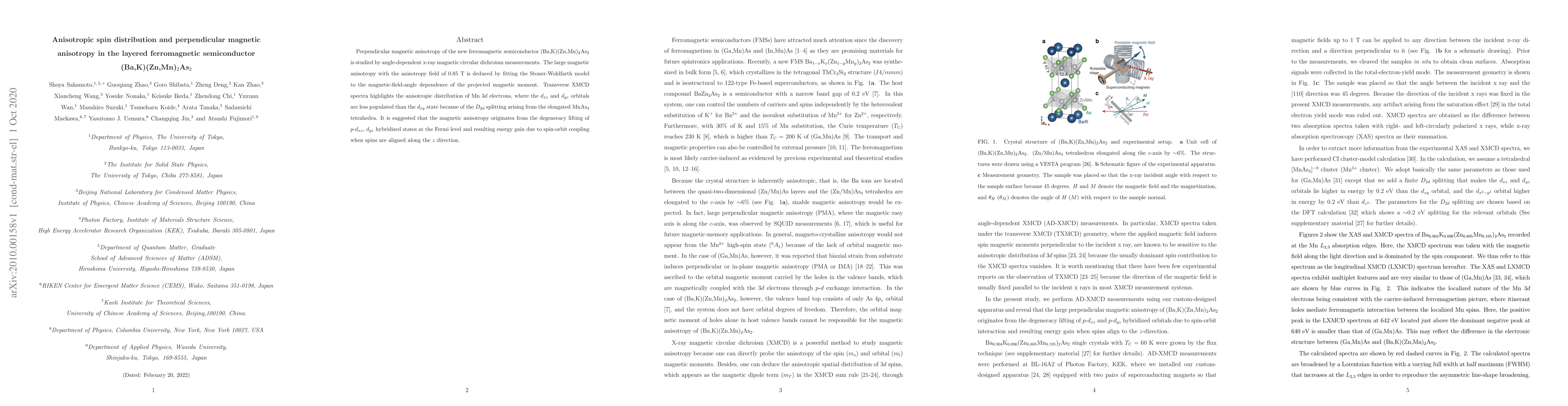 Perpendicular magnetic anisotropy of the new ferromagnetic semiconductor (Ba,K)(Zn,Mn)$_{2}$As$_{2}$ is studied by angle-dependent x-ray magnetic circular dichroism measurements. The large magnetic anisotropy with the anisotropy field of 0.85 T is deduced by fitting the Stoner-Wohlfarth model to the magnetic-field-angle dependence of the projected magnetic moment. Transverse XMCD spectra highlights the anisotropic distribution of Mn 3$d$ electrons, where the $d_{xz}$ and $d_{yz}$ orbitals are less populated than the $d_{xy}$ state because of the $D_{2d}$ splitting arising from the elongated MnAs$_{4}$ tetrahedra. It is suggested that the magnetic anisotropy originates from the degeneracy lifting of $p$-$d_{xz}$, $d_{yz}$ hybridized states at the Fermi level and resulting energy gain due to spin-orbit coupling when spins are aligned along the $z$ direction.