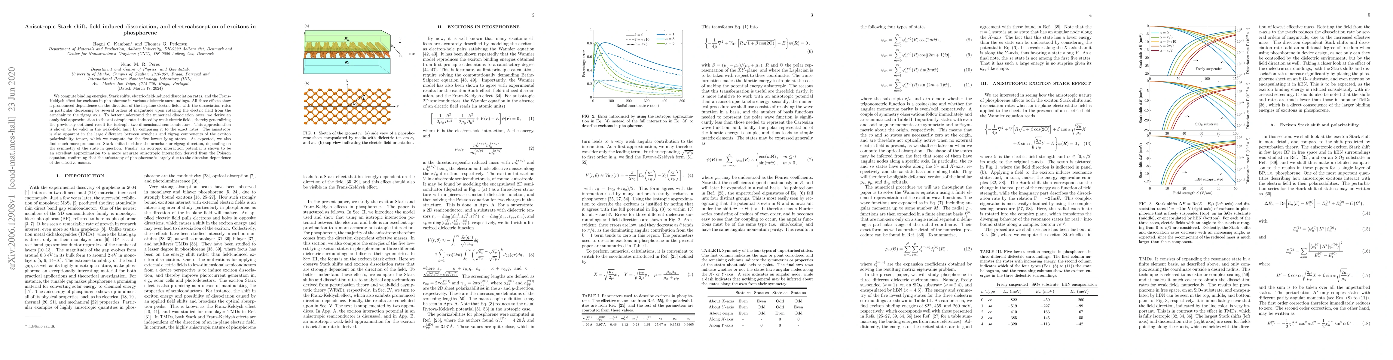 Research on phosphorene reveals that weak electric fields significantly reduce exciton dissociation rates when aligned with the material's anisotropic crystal structure, a phenomenon linked to direction-dependent effective masses.