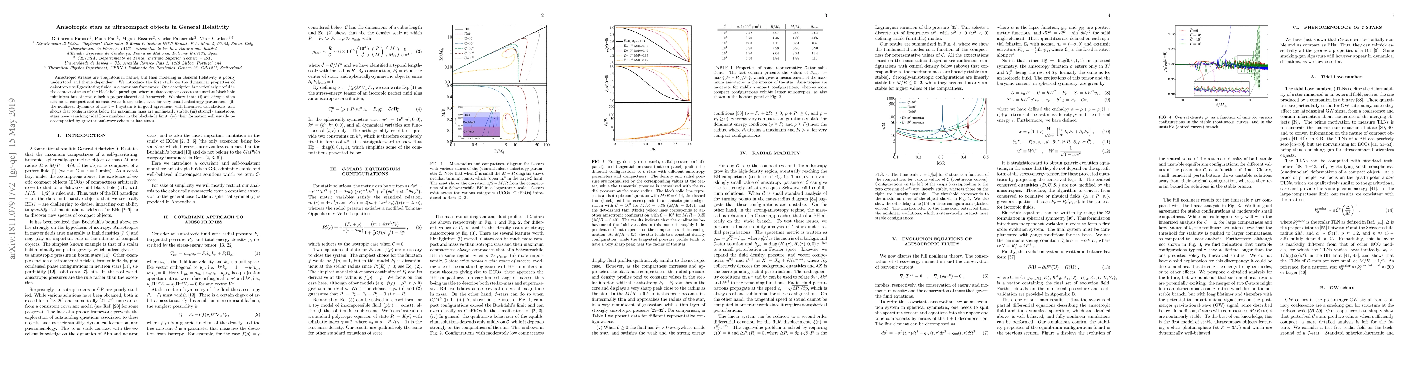 This study introduces a covariant framework for understanding anisotropic fluid dynamics in General Relativity, showing anisotropic stars can be as compact and massive as black holes with small anisotropy. Key findings include stability of configurations below maximum mass, zero tidal Love numbers in the black-hole limit, and potential gravitational-wave echoes during formation.