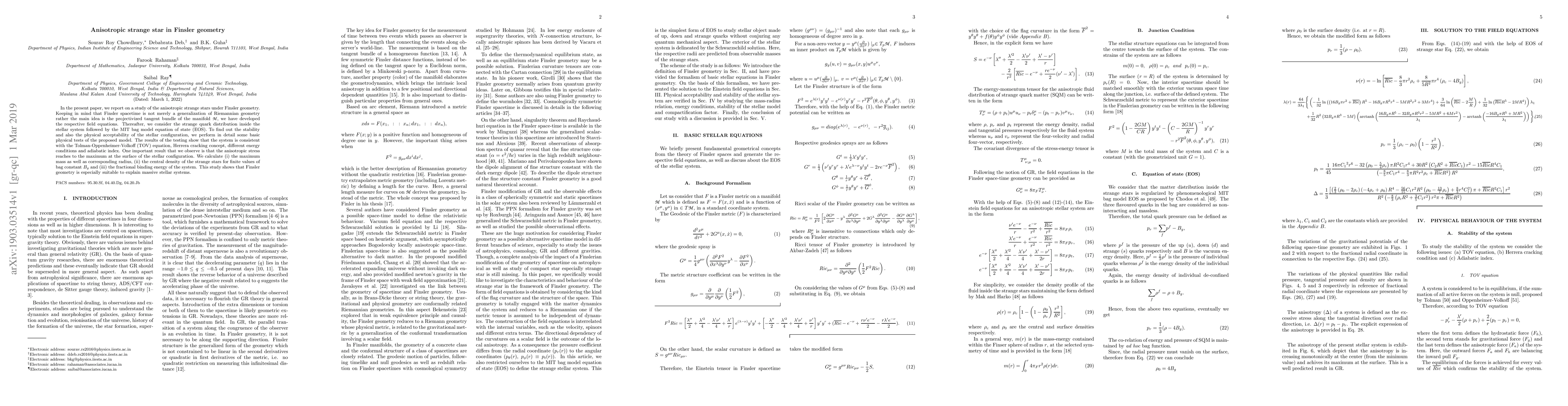 In the present paper, we report on a study of the anisotropic strange stars under Finsler geometry. Keeping in mind that Finsler spacetime is not merely a generalization of Riemannian geometry rather the main idea is the projectivized tangent bundle of the manifold $\mathpzc{M}$, we have developed the respective field equations. Thereafter, we consider the strange quark distribution inside the stellar system followed by the MIT bag model equation of state (EOS). To find out the stability and also the physical acceptability of the stellar configuration, we perform in detail some basic physical tests of the proposed model. The results of the testing show that the system is consistent with the Tolman-Oppenheimer-Volkoff (TOV) equation, Herrera cracking concept, different energy conditions and adiabatic index. One important result that we observe is that the anisotropic stress reaches to the maximum at the surface of the stellar configuration. We calculate (i) the maximum mass as well as corresponding radius, (ii) the central density of the strange stars for finite values of bag constant $B_g$ and (iii) the fractional binding energy of the system. This study shows that Finsler geometry is especially suitable to explain massive stellar systems.